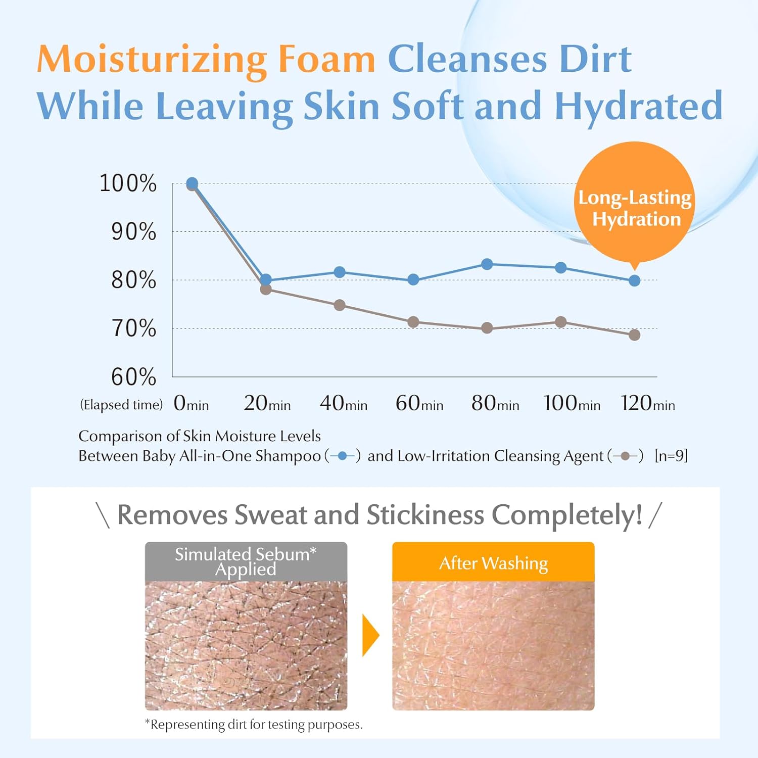 - Gentle Foam for Easy Use: Produces soft foam with a single pump, allowing you to cleanse your baby’s face and body with minimal effort.
