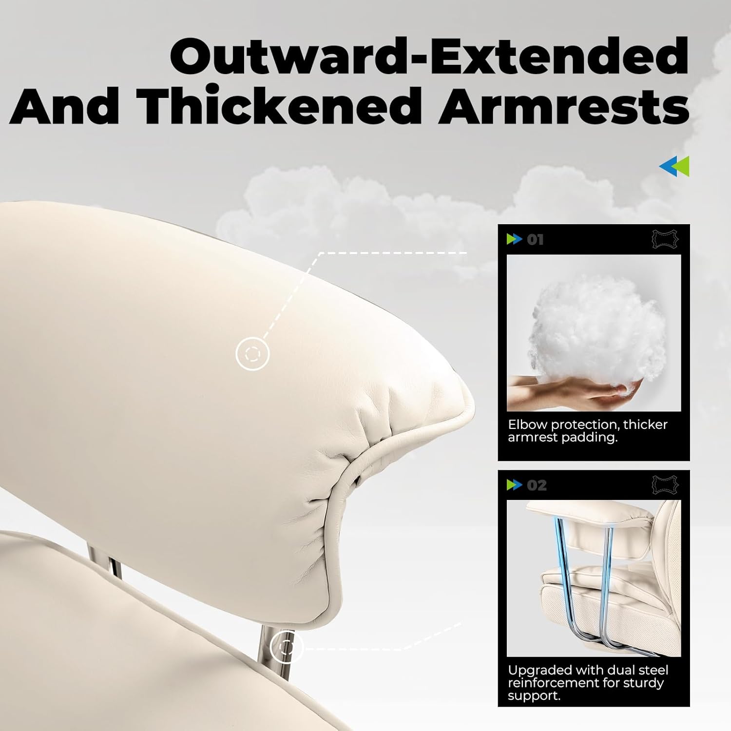 - 【Durable and Stable Construction】Equipped with a BIFMA-certified five-star base that supports up to 300 lbs, and an SGS-3 gas lift certified for over 120,000 lift cycles. Compared to nylon armrests, the metal armrest frame offers superior strength and durability. The wide seat and high backrest accommodate users of various body types.