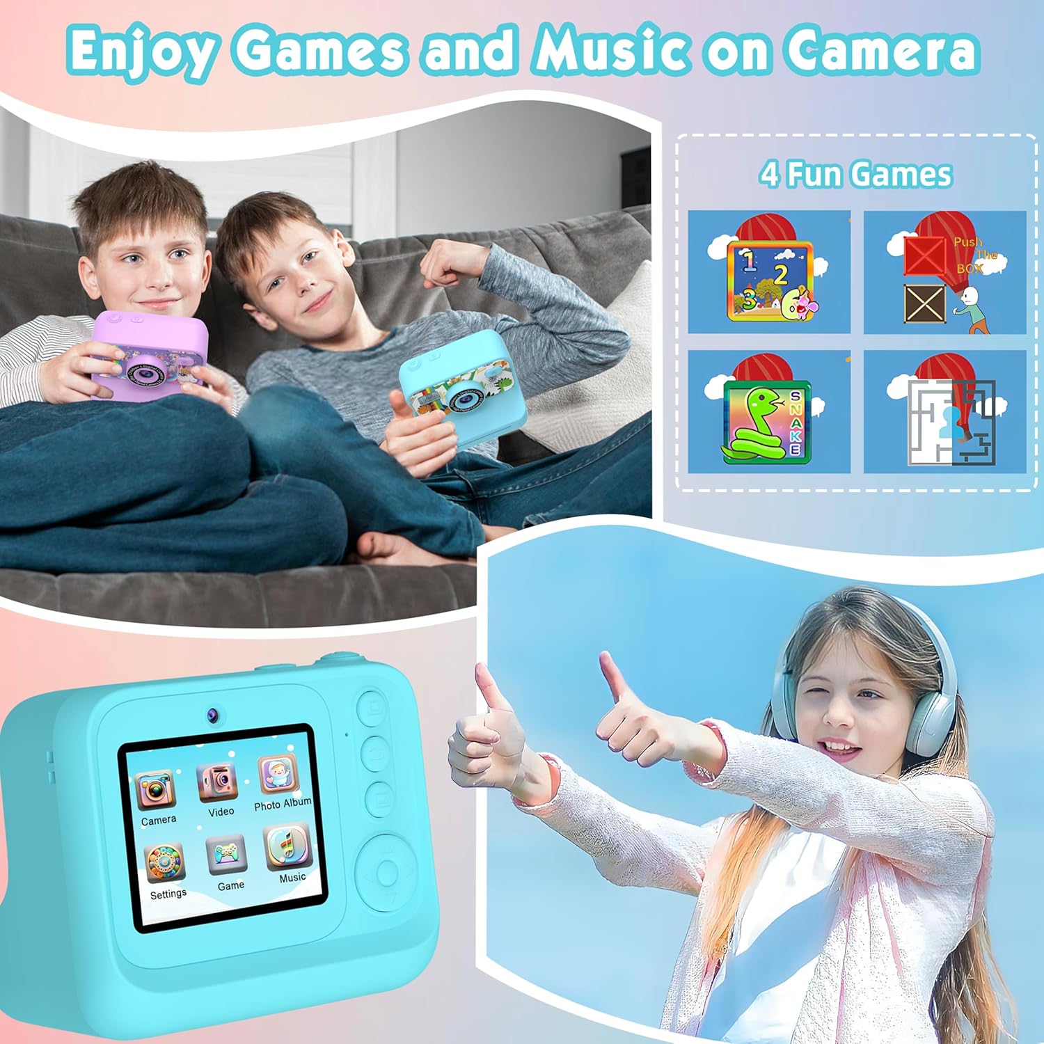 Kids Camera, Upgrade Kids Camera Instant Print, Front Rear Dual Selfie Digital CAM with 1080P Videos, Portable Travel Toy with Games and Music, Christmas Birthday Gift for Boys, Girls and Teens