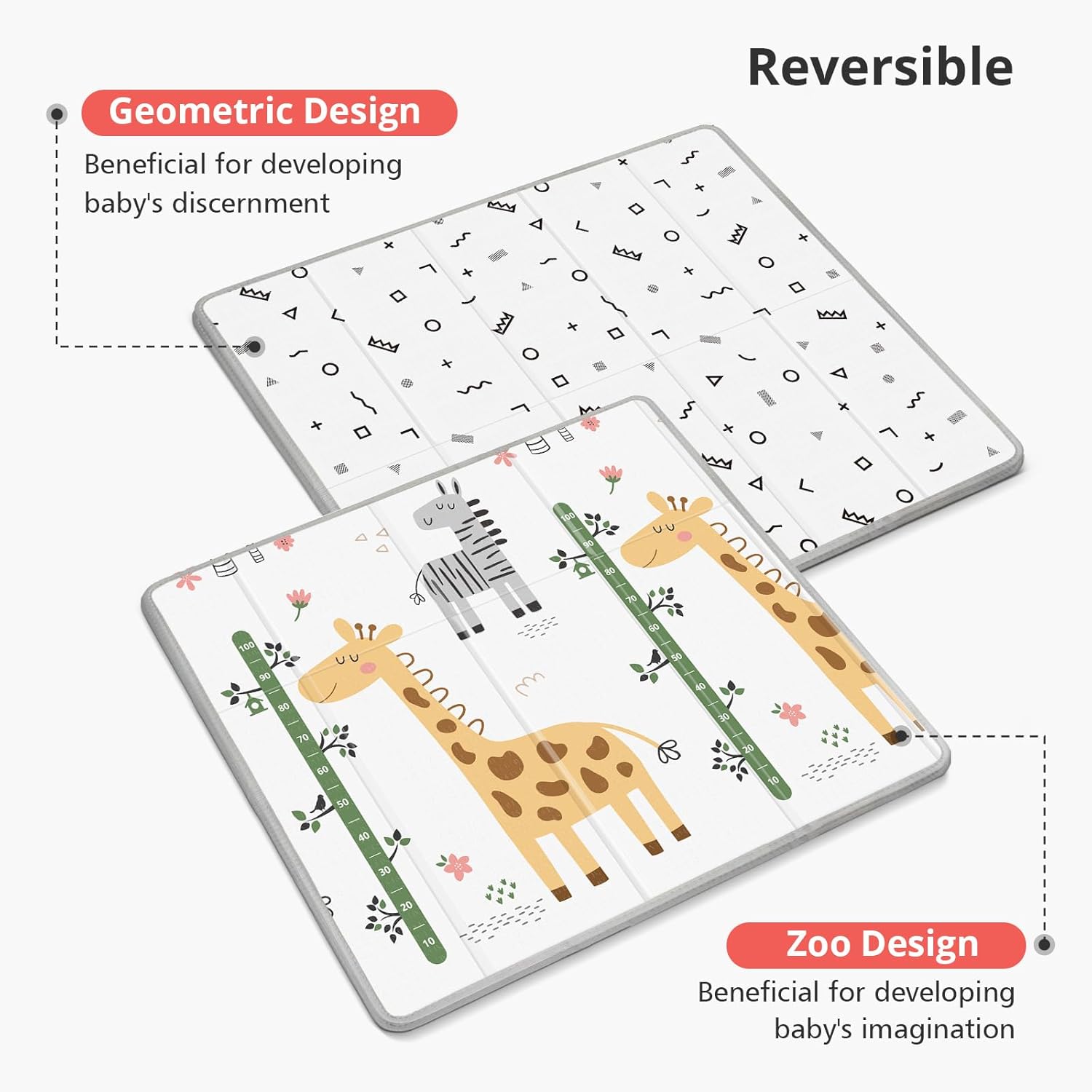 Foldable Baby Play Mat, PIGLOG 0.6in Thick Waterproof Playmats for Babies and Toddlers Kids, Safe Foam Playmat for Tummy Time, 50x50 Playpen Mat, Reversible Portable Baby Floor Mat for Infant, Giraffe