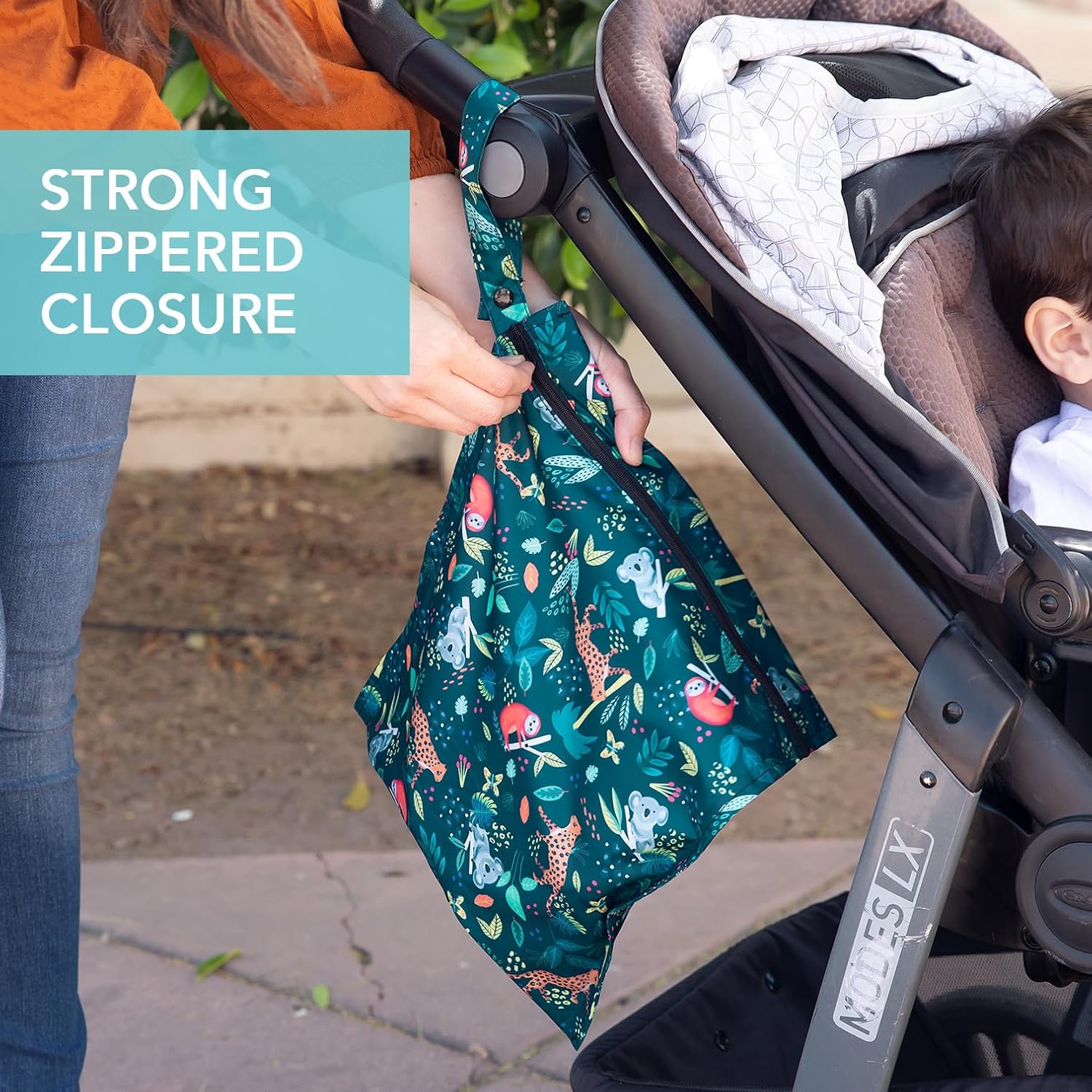 - VERSATILE USE - Not just for wet items! Use as organizers for storage, packing cubes, or diaper bag essentials. Built-in snap handle makes it easy to attach to strollers, suitcases, or hooks—great for travel, camping, pool days, and more.