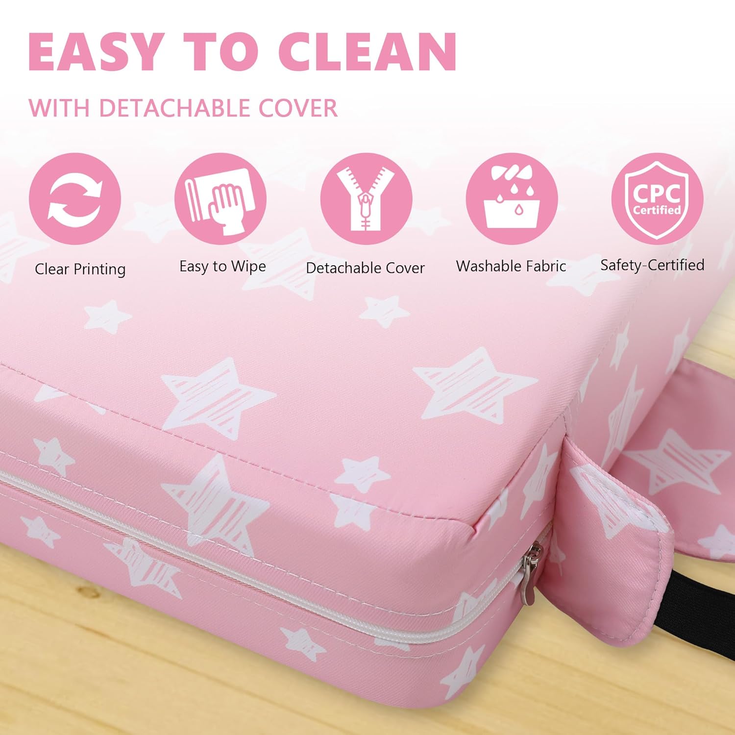 - 【Detachable for Easy Washing】The booster seat cover can be removed by unzipping, making cleaning a breeze. When spills or stains occur, simply remove the seat cover and toss it in the washing machine. The removable cover ensures that you always keep the seat clean and hygienic, providing a fresh and pleasant seating experience for your baby.