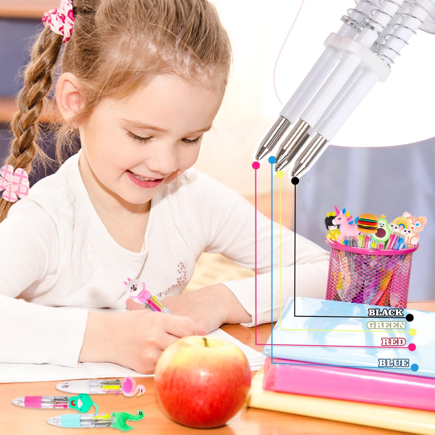 - 4 In 1 Pens Bulk: Each mini pens for kids has 4 different ink colors. Just press effortlessly, you can easily switch between different pen ink colors. You can effectively highlight your work or notes with different colors and provide important annotations in a way that suits your preferences