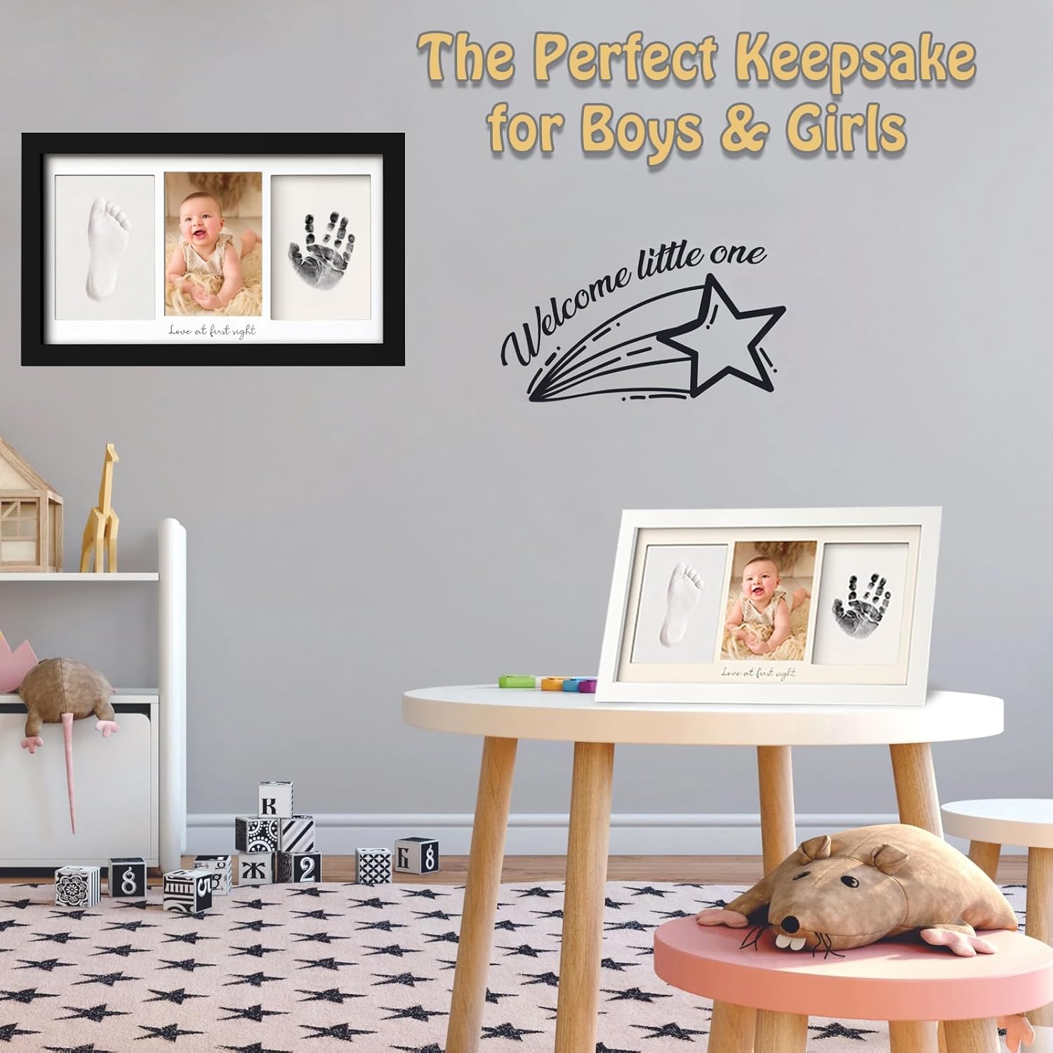 Baby Hand and Footprint Kit Keepsake Nursery Decor Picture Frame for New Mom Baby Boys Girls Shower Gifts Personalized Inkless & Clay Handprint Newborn Essentials Must Haves (Black)