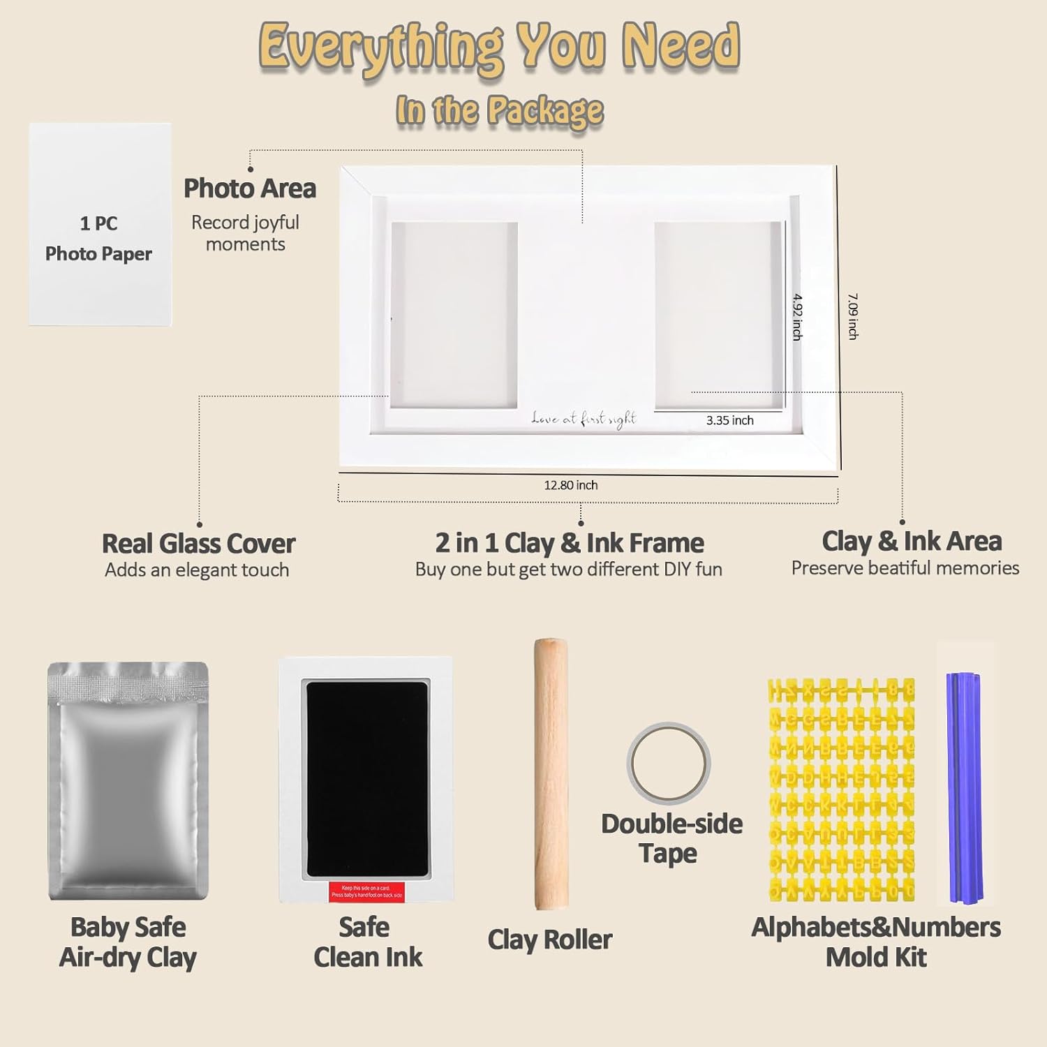 - Safe & Non-Toxic Materials: Our baby hand footprint kit is made with inkless and clay materials that are 100% non-toxic and baby-safe, ensuring it’s perfect for your little one’s delicate skin. The clean-touch ink pad and baby-safe paint for hand and feet ensure no mess, while the soft clay is gentle and easy to mold, making it ideal for capturing your newborn’s precious moments. A new born baby essentials must haves or as a thoughtful new baby gifts.