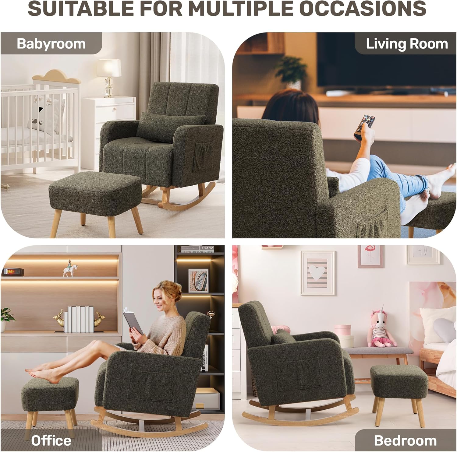 - DURABLE & EASY MAINTENANCE: Made from high-quality teddy, this rocker chair boasts excellent breathability and is resistant to wear and pilling, providing long-lasting durability. The wrinkle-resistant surface makes cleaning a breeze, so you can relax and enjoy your chair without any hassle