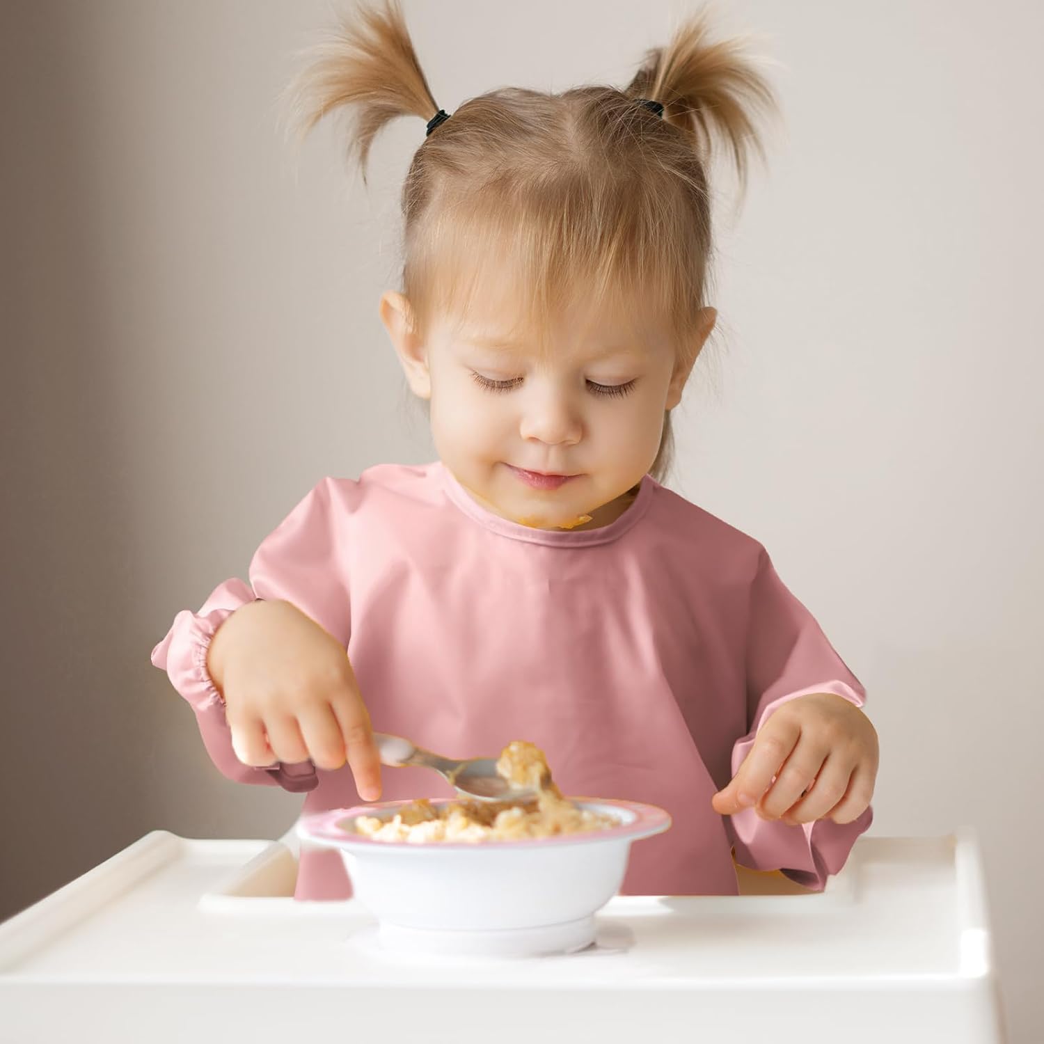 - Mess-Free Solution - Our sleeved bibs are crafted from lightweight, waterproof, easy-wipe fabric that resists stains and odors. Generously sized to contain messes, these bibs feature a spill pocket to catch stray food, keeping your baby and the surrounding area clean.