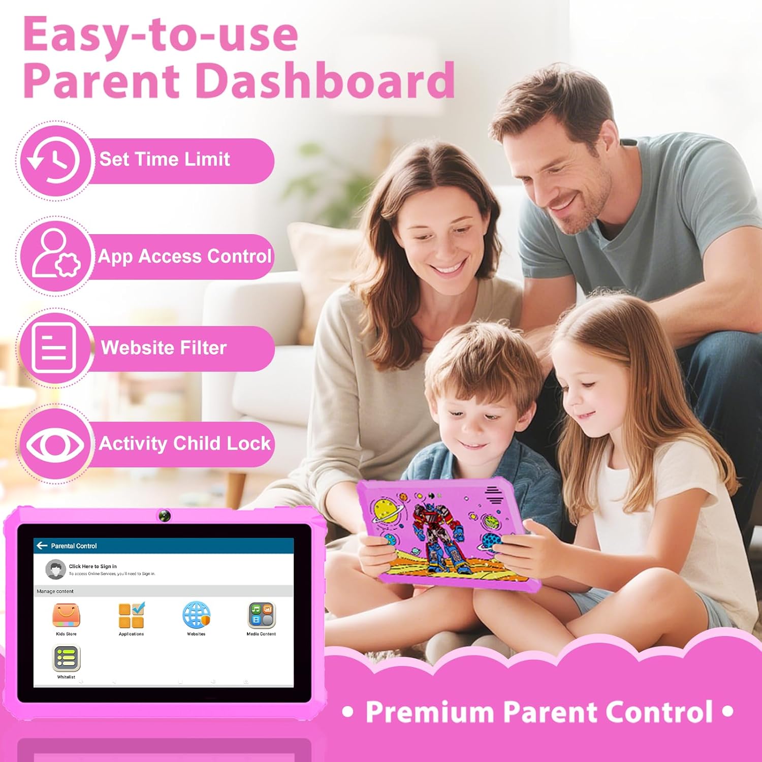 - 【Parental Controls for a Safe Digital Experience】Keep your child’s digital world secure with robust parental controls. Tablets for toddlers support creating customized profiles, block apps, filter content, and set screen time limits to ensure a safe and balanced experience. This tablet for kids supports multiple accounts, so siblings can enjoy personalized learning paths. Whether it’s limiting gaming hours or approving educational apps, you’re in full control. A perfect kid tablet gift for birthdays or holidays, it balances fun and safety, giving parents peace of mind