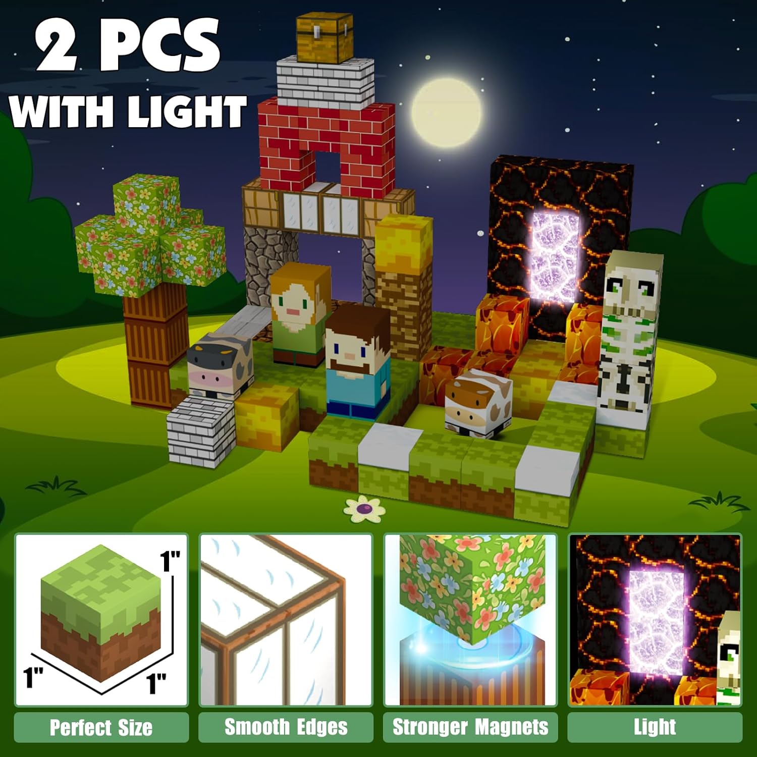 - 2PC with Light : Flip the switch, and the 2 glowing blocks light up, filling playtime with mystery. They're great for sprucing up courtyard garden or any scene kids build