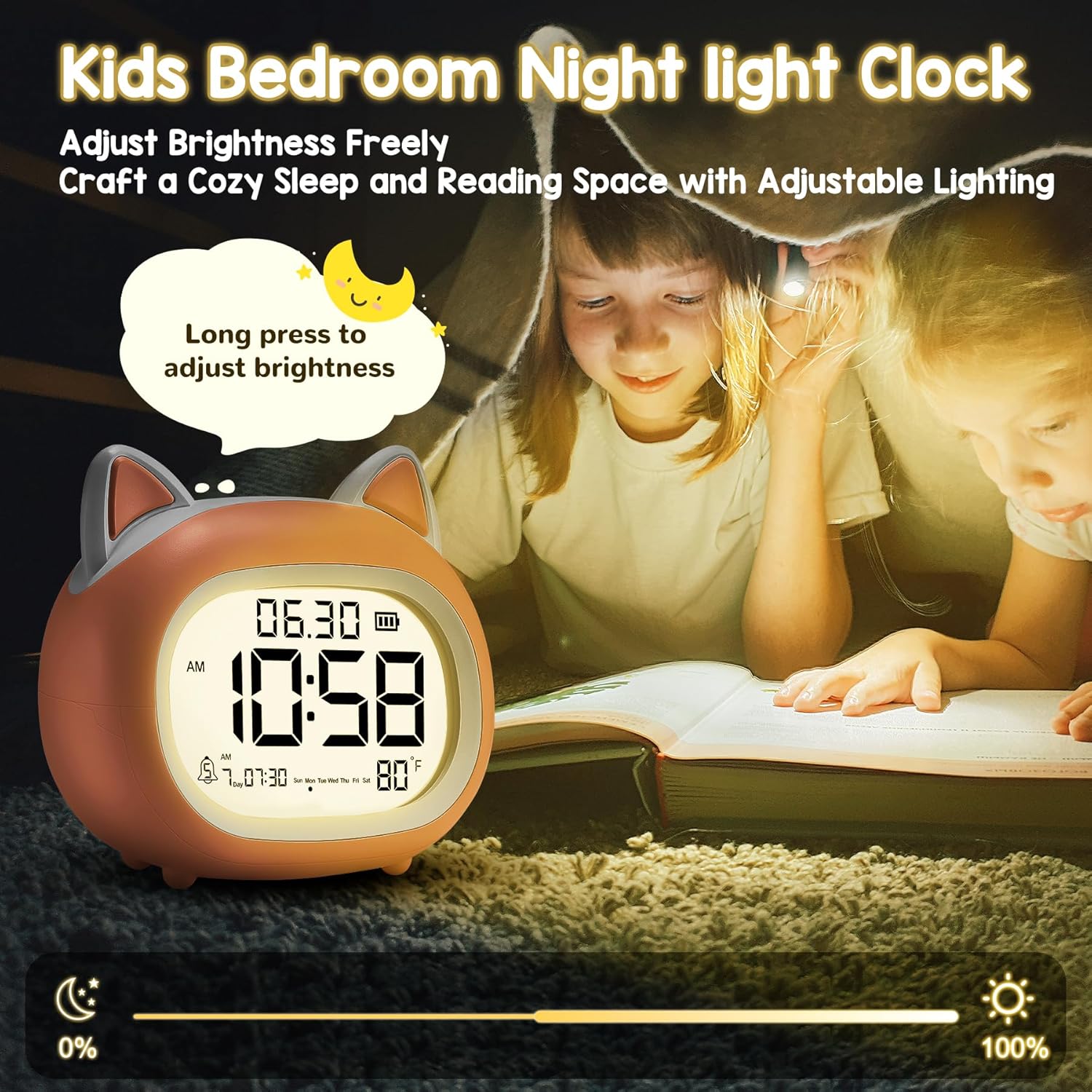 - 🔦 【Built-In Night Light for Added Convenience】The alarm clock features a soft, built-in night light that provides just enough illumination to help kids see in the dark—perfect for nighttime trips to the bathroom or creating a comforting environment.