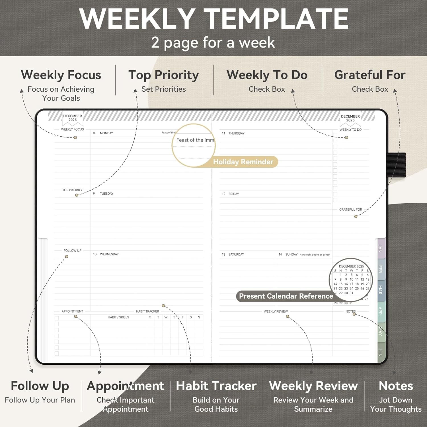 - Premium Quality Paper: Enjoy a superior writing experience on thick, bleed-resistant, off-white paper that is gentle on the eyes. Colorful tabs provide easy access to each month.