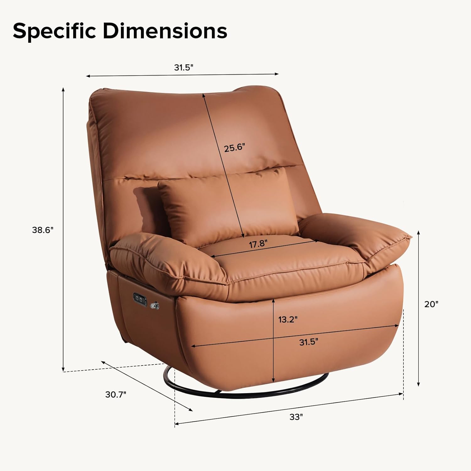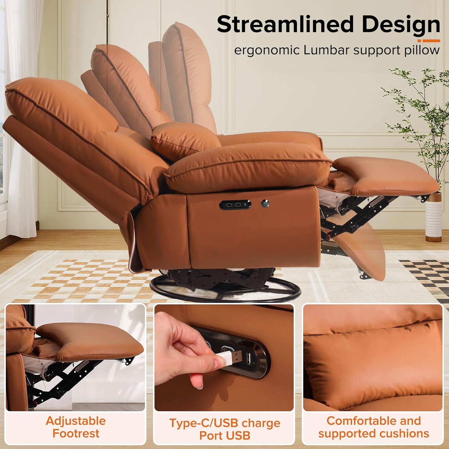 Rocking Chair Nursery with Power Adjustable, Electric Glider Recliner Nursing Chair for Breastfeeding with USB Port and Storage (Orange)