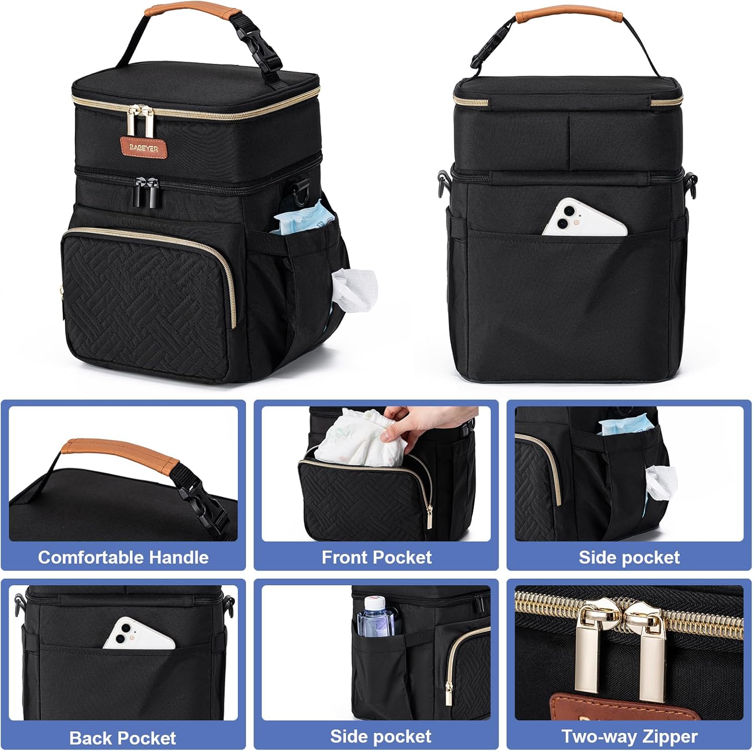- Smart Double-Layer Organization & Versatile Use:Size of the breastmilk cooler bag is 9.2"D x 8.5"W x 11.2"H,maximize storage with dual compartments holding 6 bottles (9 oz each) and wearable pump or snacks. Perfect as a breastmilk cooler bag, daycare lunch box, or portable snack organizer. Keep essentials separated and secure for on-the-go convenience.