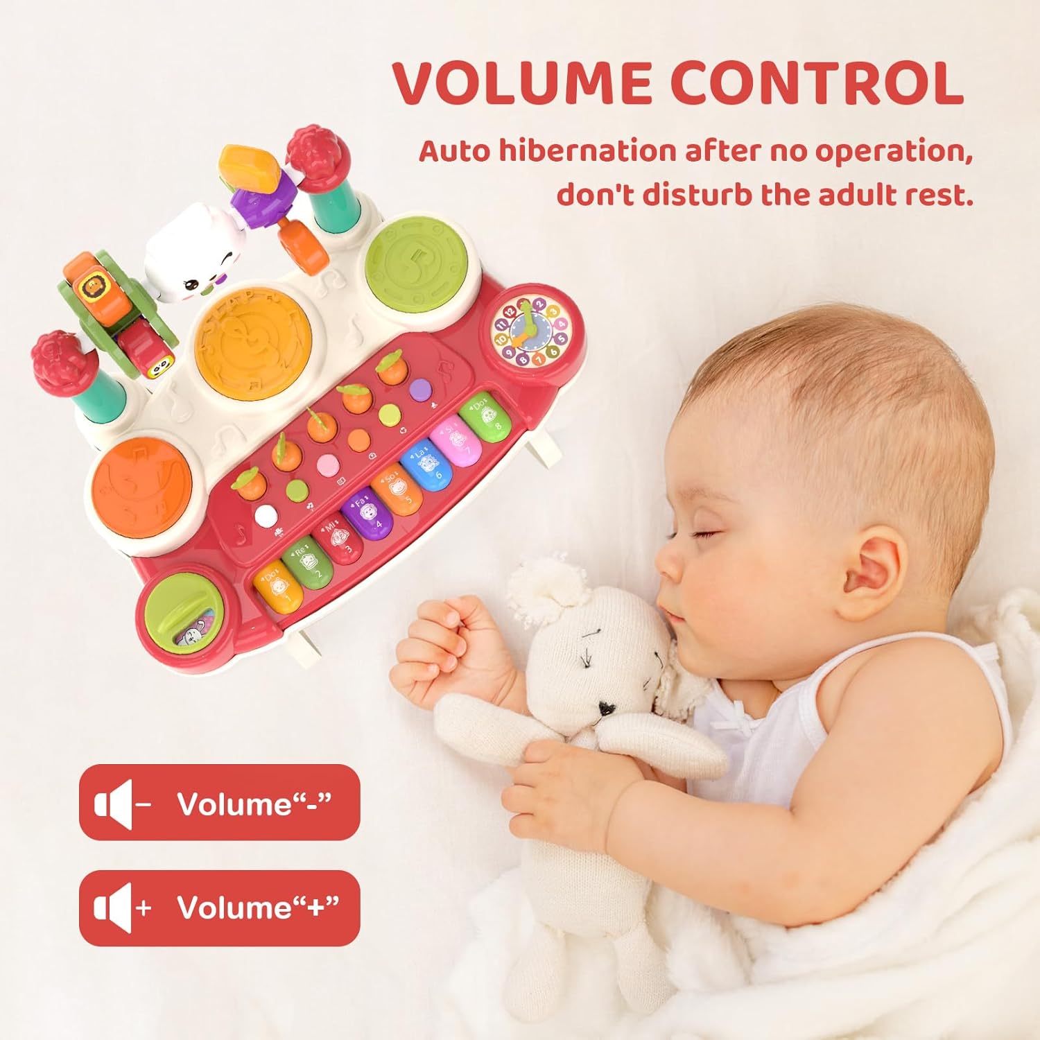 - LESSETI 20-in-1 Musical Toy: Spark creativity with piano, drum, and imaginative modes (Animal Twist & Turn, Rotating Clock, Carrot-Pulling Game). Lights, sounds, and tactile play engage growing minds.