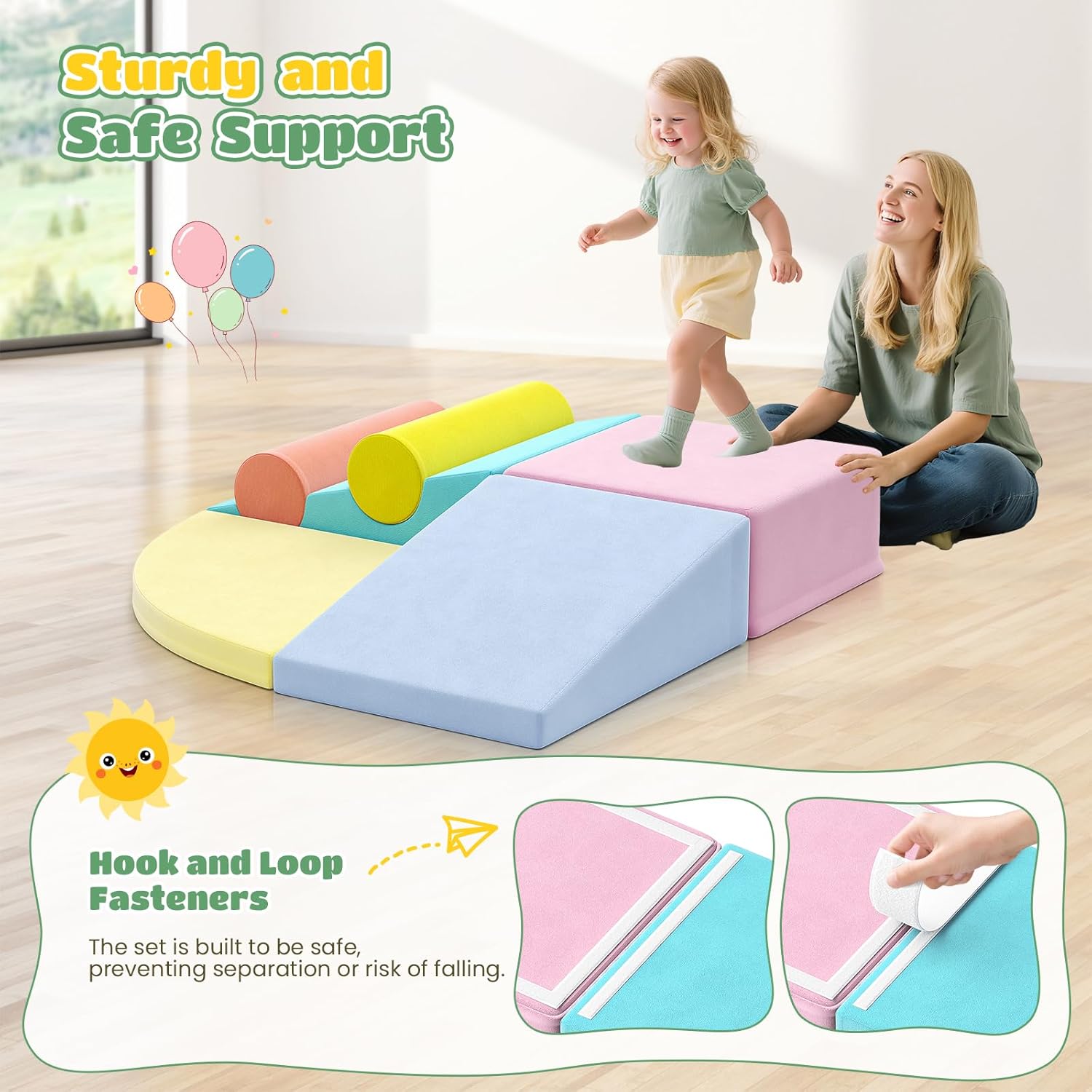 • 🌈 "Soft Play Set New upgrade" Lischwert climb and crawl activity play set incorporates with 6 foam climbing blocks, which are 1 square blocks, 1 climbing blocks, 1 slide, 1pads and 2 Cylindrical building blocks. They can be rearranged and set up in different ways, creating a colorful and engaging play experience.