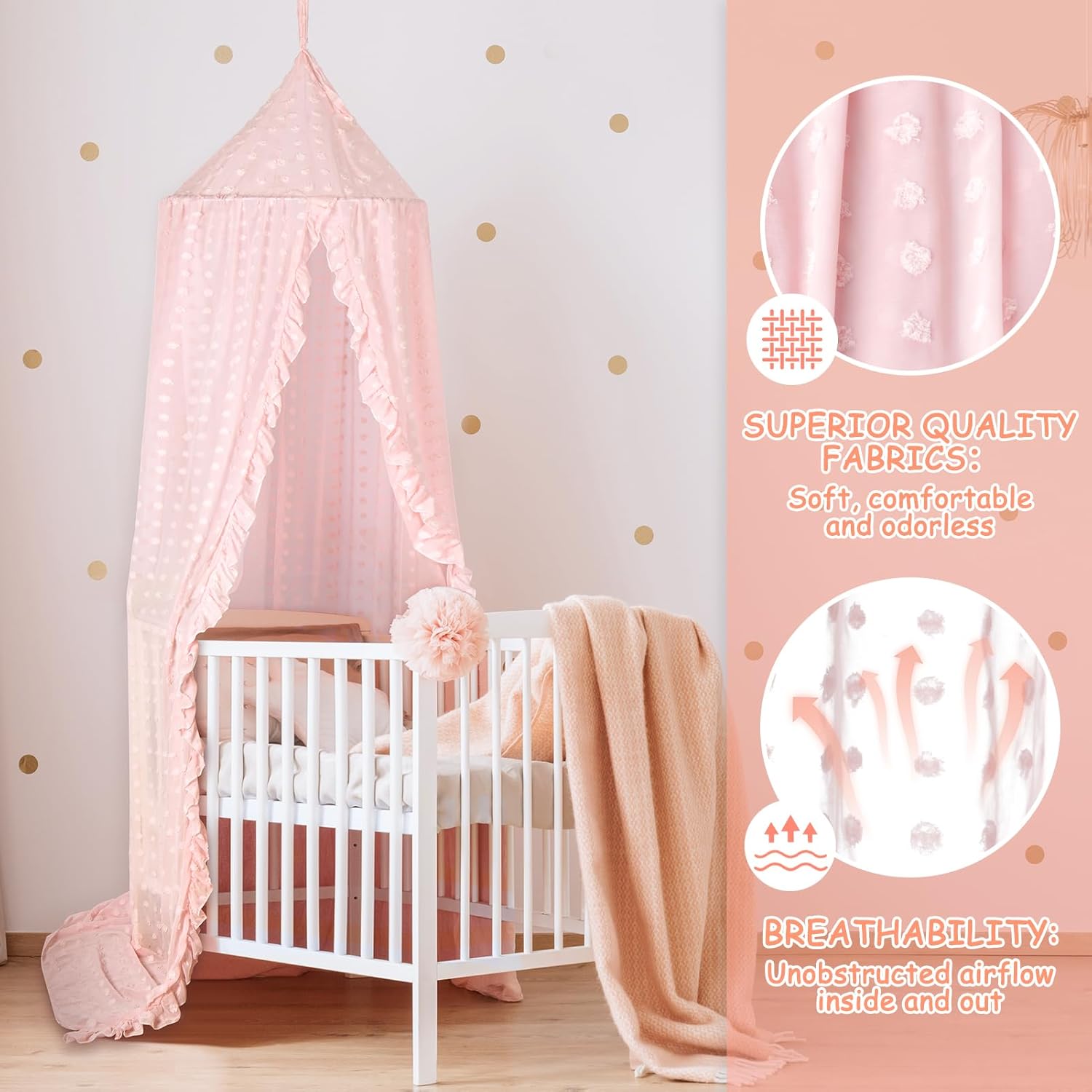 Princess Bed Canopy for Girls - Crib Canopy for Bed - Mosquito Net for Bed, Kids Bed Canopy with Princess Room Decor for Girls Bedroom,Children's Reading Room Decor (Pink)