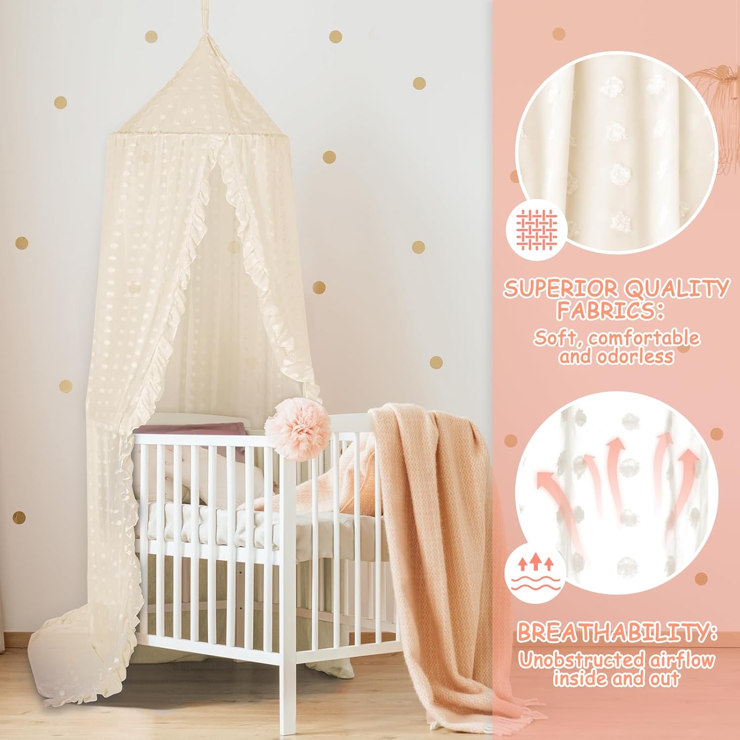 - EXCELLENT QUALITY: This bed canopy curtains uses the new upgraded excellent quality fabric, making the canopy for girls room not only tough and durable, but also soft and comfortable, breathable and odorless, providing a comfortable sleeping environment for children