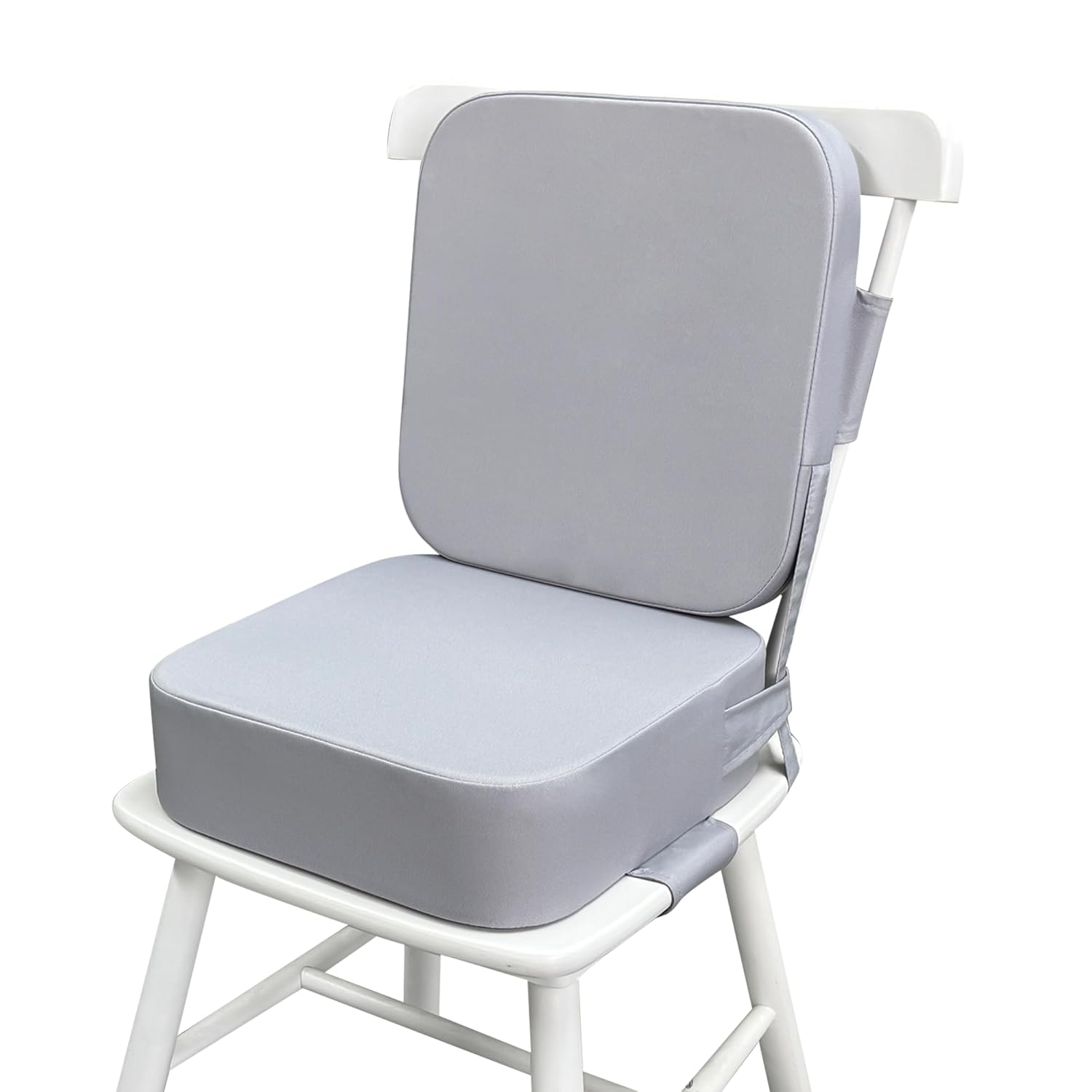 Toddler Booster Seat for Dining Table with Backrest and Adjustable Straps, Waterproof Oxford Foam Cushion with Non-Slip Bottom, Portable Chair Booster for Kitchen Use (Grey)