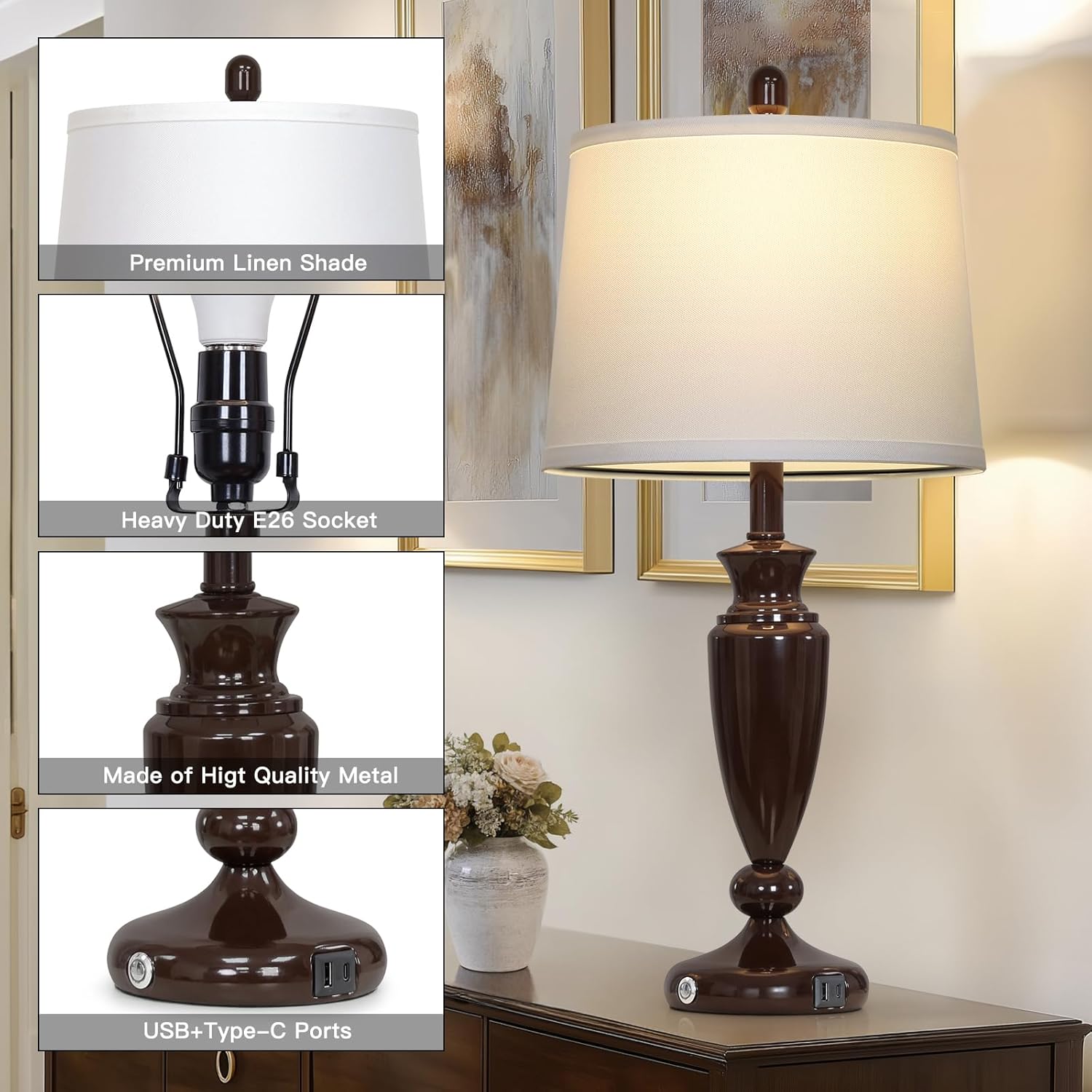 - 【Exquisite Metal Table Lamps】This Brown bedside table lamp design with heavy duty metal lamp body and finished in a natural linen white lampshade which is perfect combination of modern and metal style that adds energy and elegance to your space. Our rustic table lamps not only illuminate your home, but are a unique home decor.