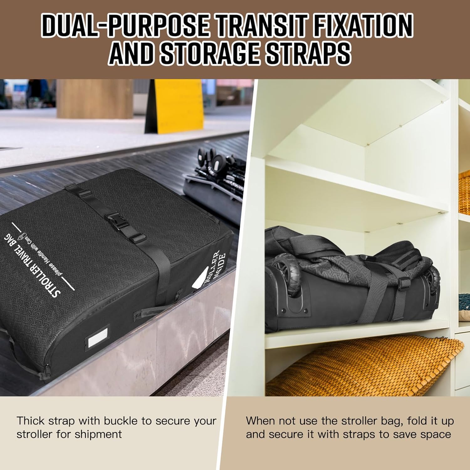 - ULTIMATE PROCTECTION: Designed with 3 layers of premium luggage grade materials,our baby stroller travel bag ensures all-around protection against bumps, scratches, and even light rain. The interior fixing strap ensure your stroller doesn't wobble inside, and an adjustable luggage packing strap(2β wide) to secure the entire travel bag in pristine condition.