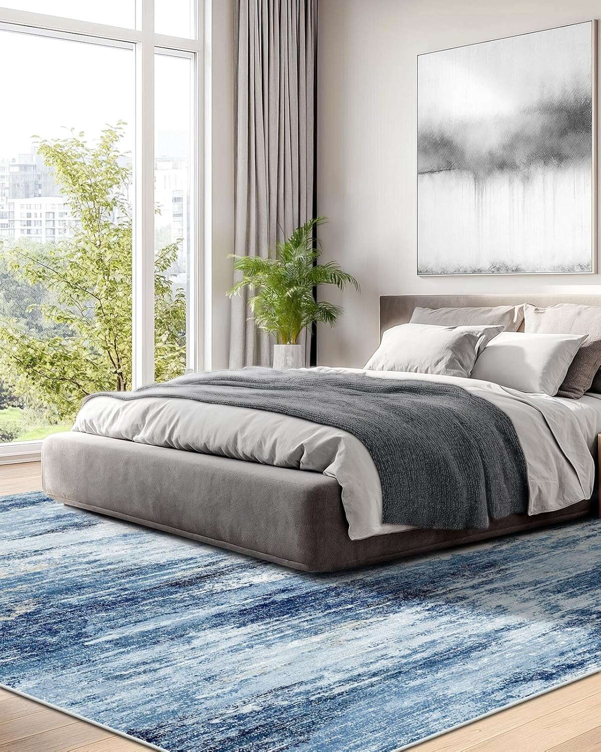 Amada 8x10 Area Rug, Modern Abstract Living Room Rug with Non-Slip Backing & Short Pile, Large Washable Rug with Abstract Pattern for Living Room, Bedroom and Dinning Room, Blue