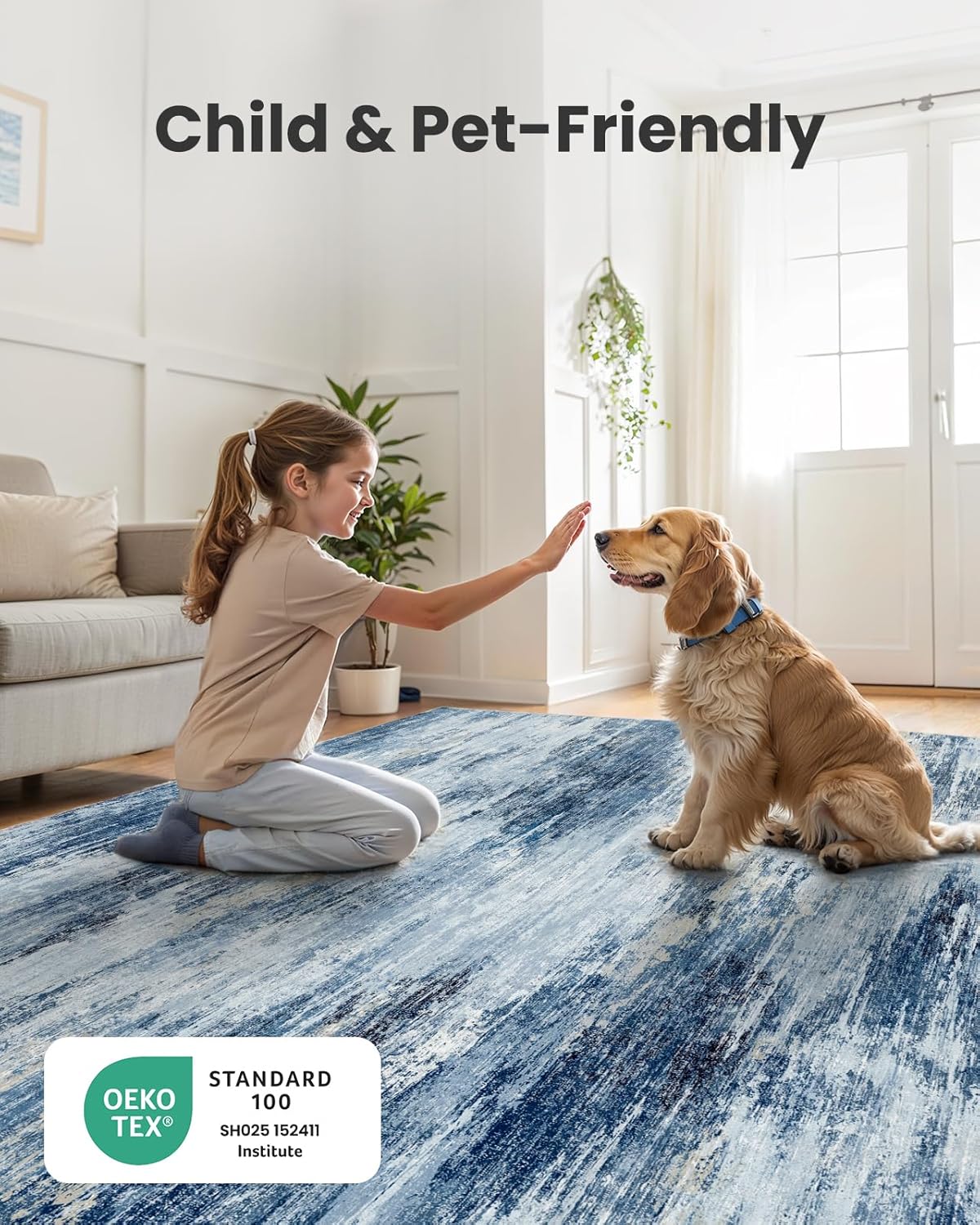 - 【OEKO-TEX Certified Quality】This washable area rug 6x9 is crafted from OEKO-TEX certified, skin-friendly materials, making it an ideal surface for children & pets. The soft feel provides a cozy barefoot experience all day long.