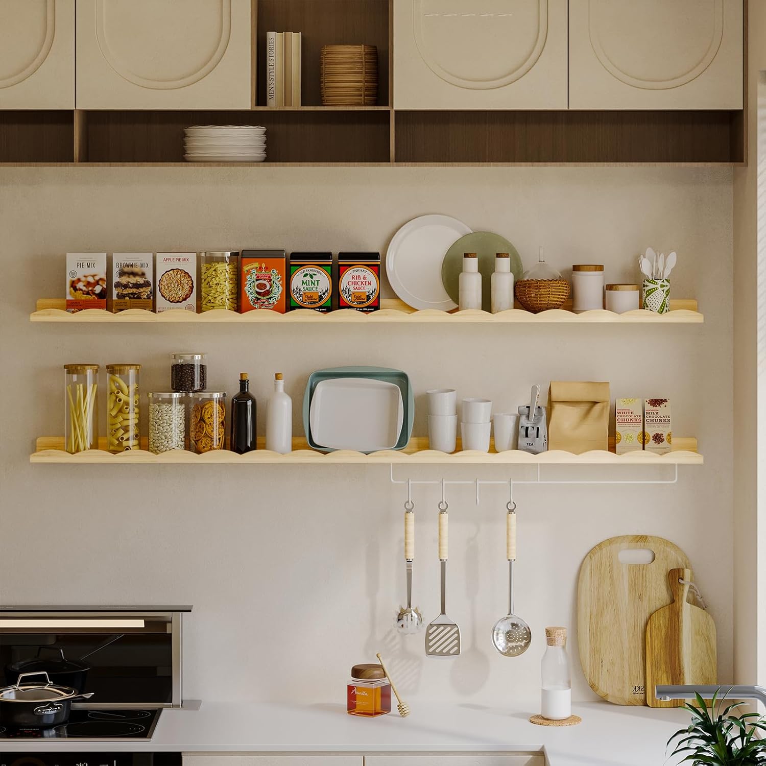 Fixwal Nursery Shelves, 24 Inch Floating Bookshelves for Wall Set of 4, Scalloped Wall Book Shelves with Towel Rack for Kids, Toddler Room, Baby Room, Nursery Decor and Storage(Natural Wood)