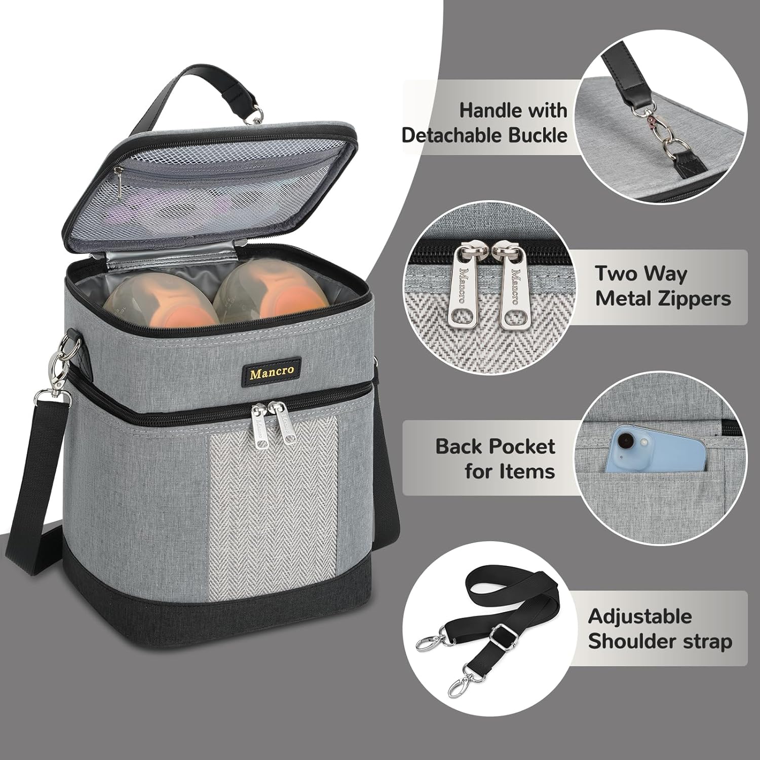 Mancro Breastmilk Cooler Bag with Ice Pack, insulated bottle bag for Daycare and Travel, Double Layer Baby Bottle Cooler Bag Fits 6 up to 9 Ounces for Nursing Moms, Light Grey
