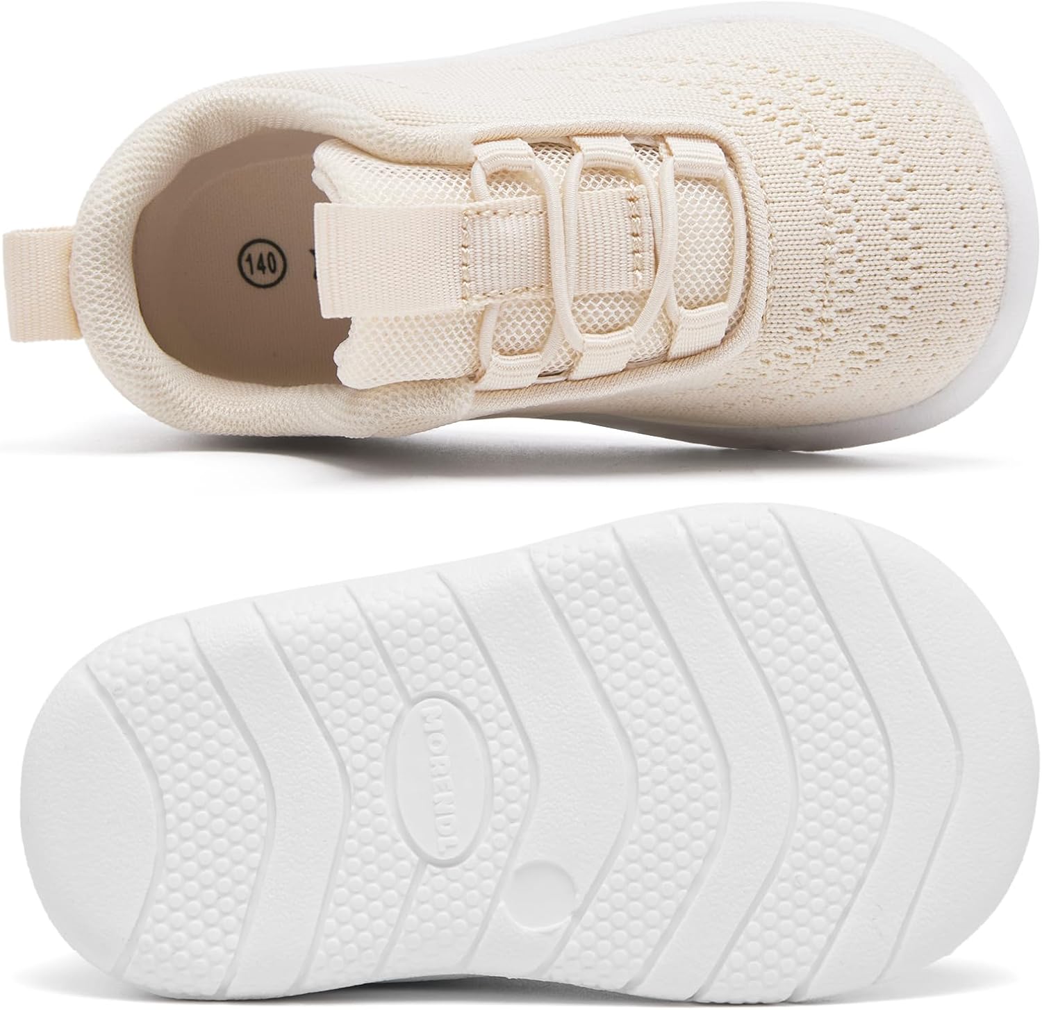 MORENDL Toddler Slip On Sneakers Baby Walking Shoes Non-Slip Breathable Unisex Pink Mesh Lace-Up Athletic Sneakers Infant Running Shoes
