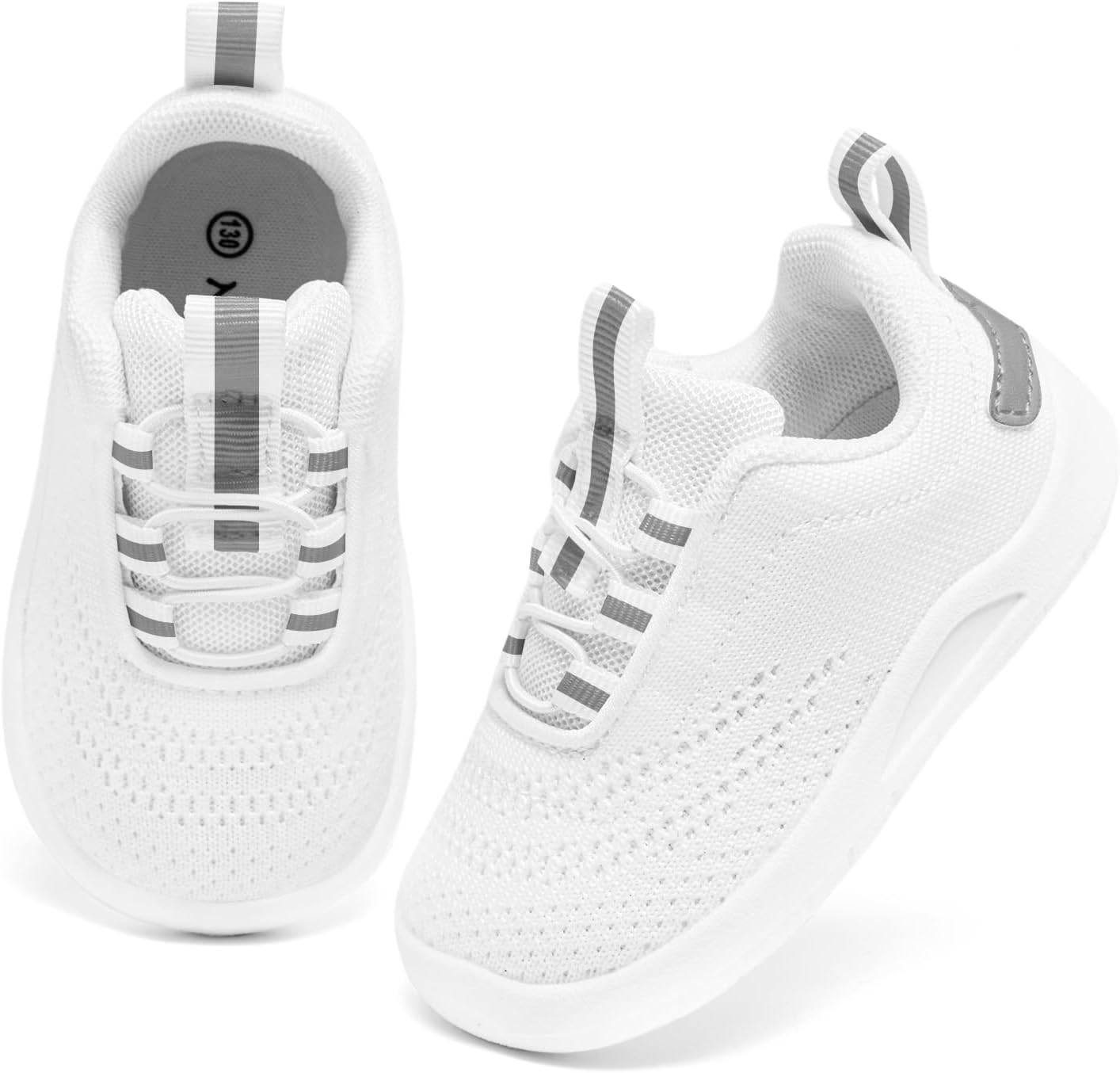 MORENDL Toddler Slip On Sneakers Baby Walking Shoes Non-Slip Breathable Unisex Pink Mesh Lace-Up Athletic Sneakers Infant Running Shoes