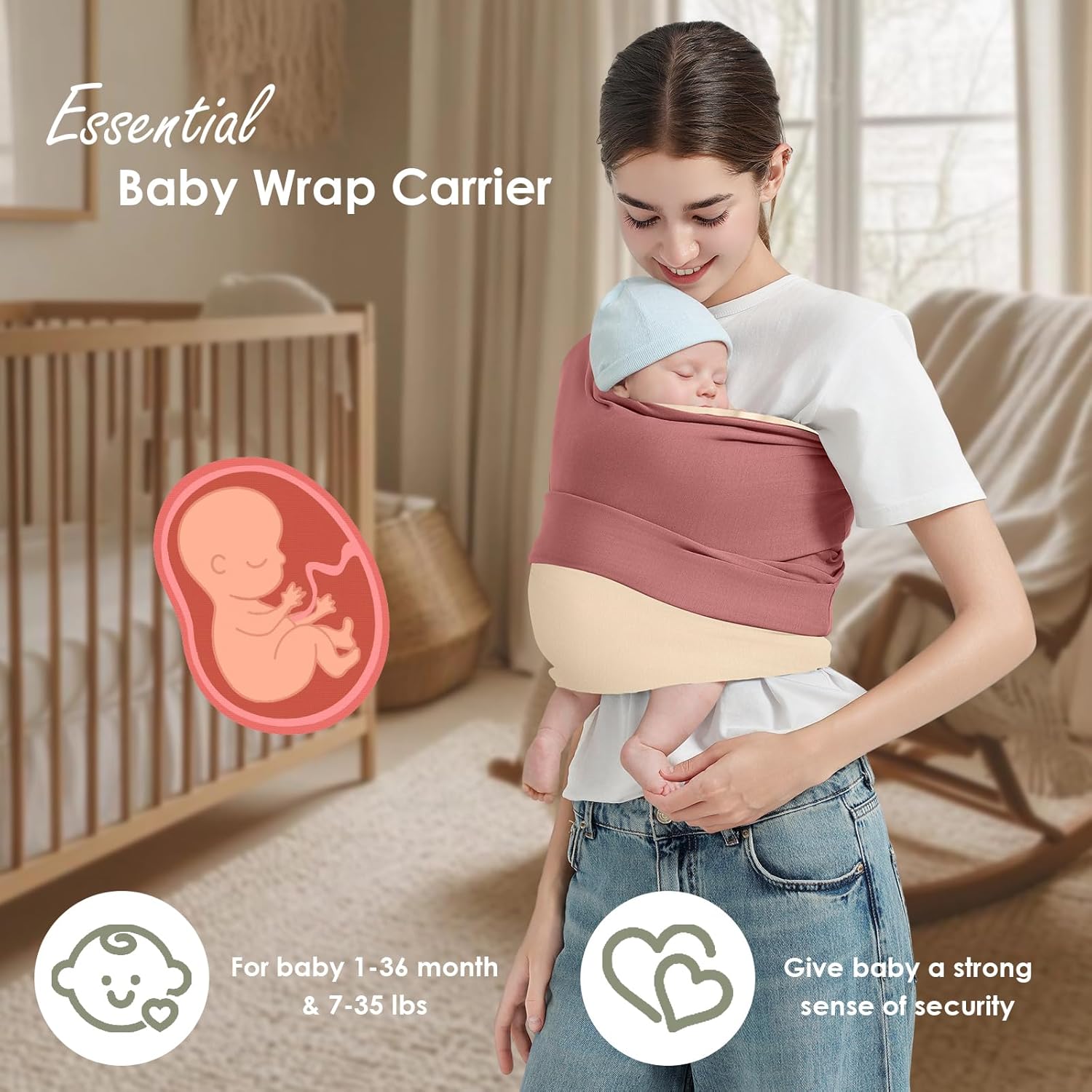Baby Wrap Carrier, Lightweight Baby Wearing Wraps for Newborn and Infant, Soft Swaddle Holder Carrier, Cozy Baby Sling 7-35 lbs Cream+Pink