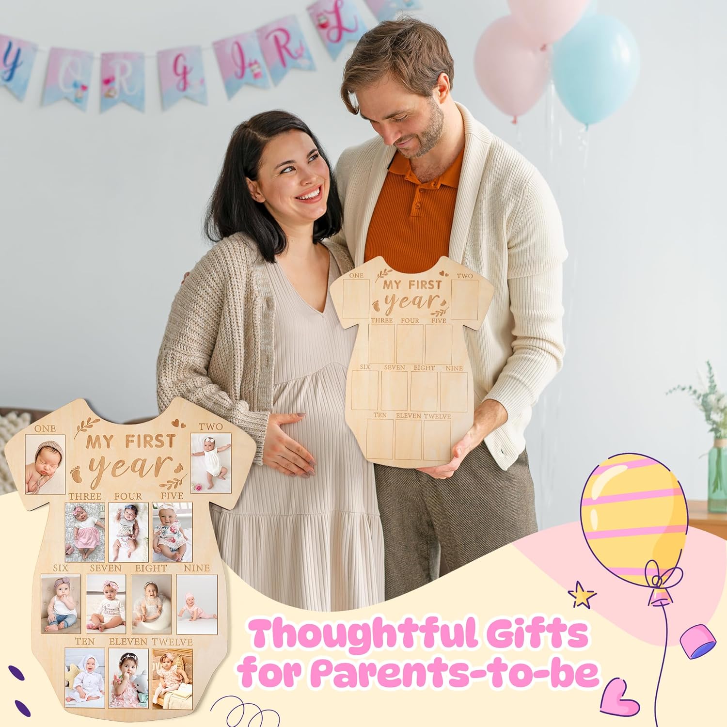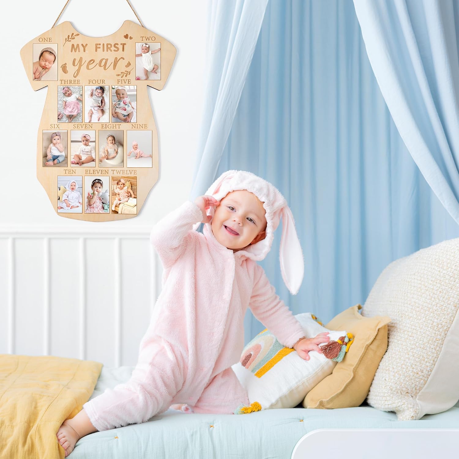 - Thoughtful Gift: Give this baby photo wooden board to new parents as an ideal gift choice for a baby shower, baby boy girl first year party, birthday party, Christmas and various other occasions. Decorate your nursery or baby's birthday party with a priceless piece of their first year.
