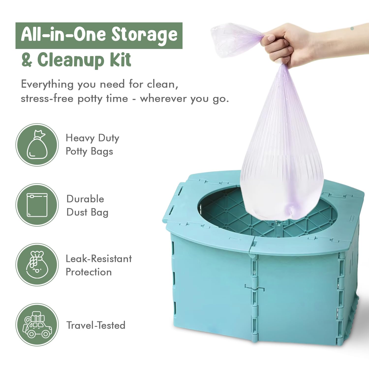- ✅ ALL-IN-ONE POTTY KIT FOR STRESS-FREE USE: Comes with 10 disposable potty bags and a washable drawstring dust bag for easy cleanup and hygienic storage. The leak-resistant potty bags prevent spills and odors, giving you peace of mind whether you're at home or on the road. It's the best travel potty for toddlers who need a portable potty with liners and a toddler potty with bag. Ideal for camping, daycare, and hotel stays—a truly hygienic toddler potty kit.