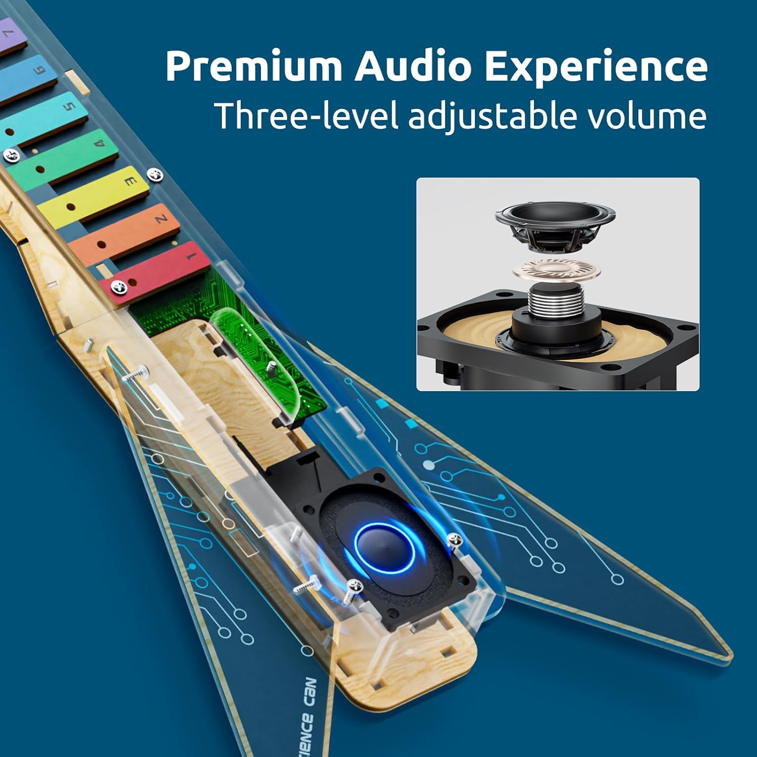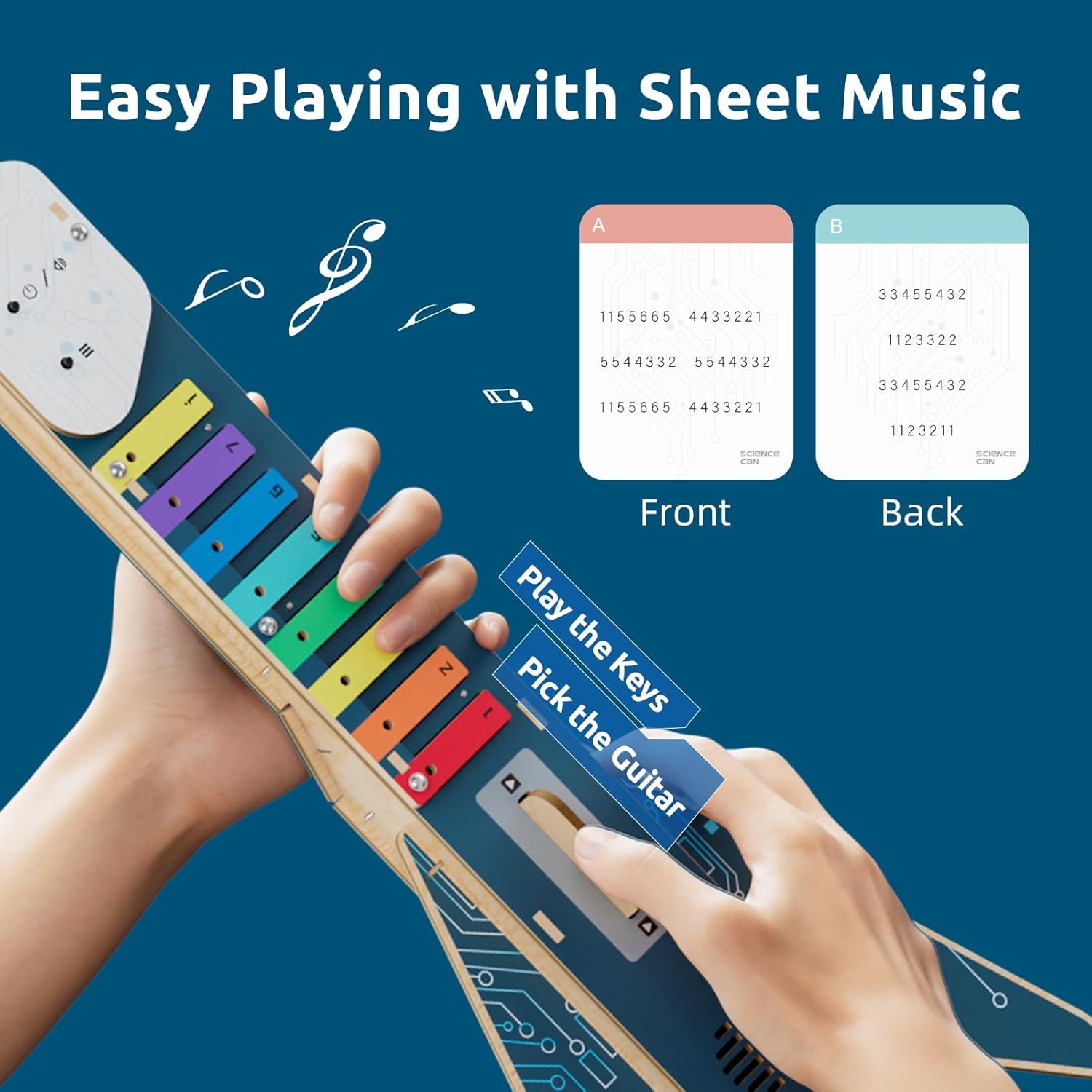 - Great STEM Toys:Get ready to rock! Let kids learn circuit basics and discover how electric guitars create sound. They'll build their own playable guitar while exploring physics, music, and electronics through hands-on building