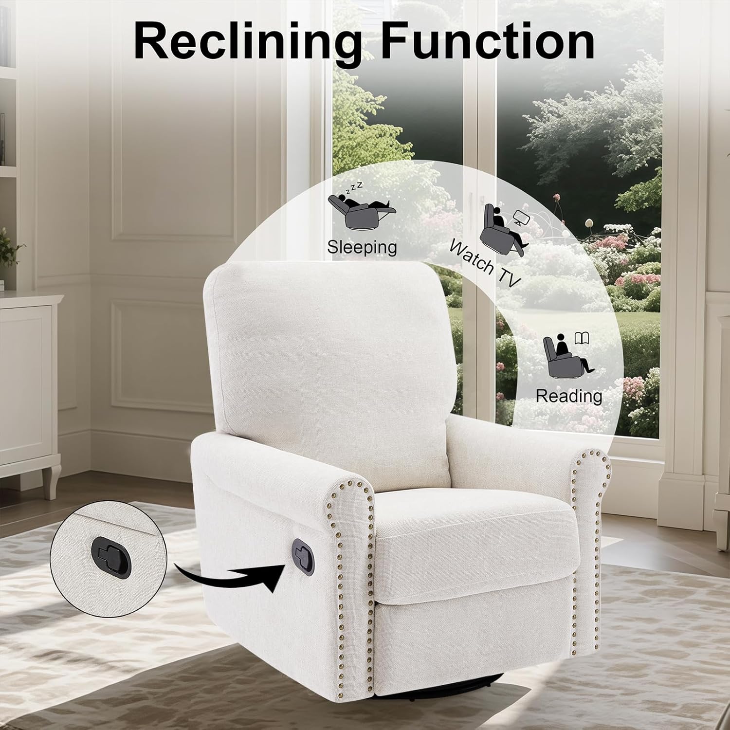 Recliner Chair, 360 Swivel Rocker Chair for Adults Nursery Rocking Chairs Glider Chairs for Living Room, Bedroom, Apartment