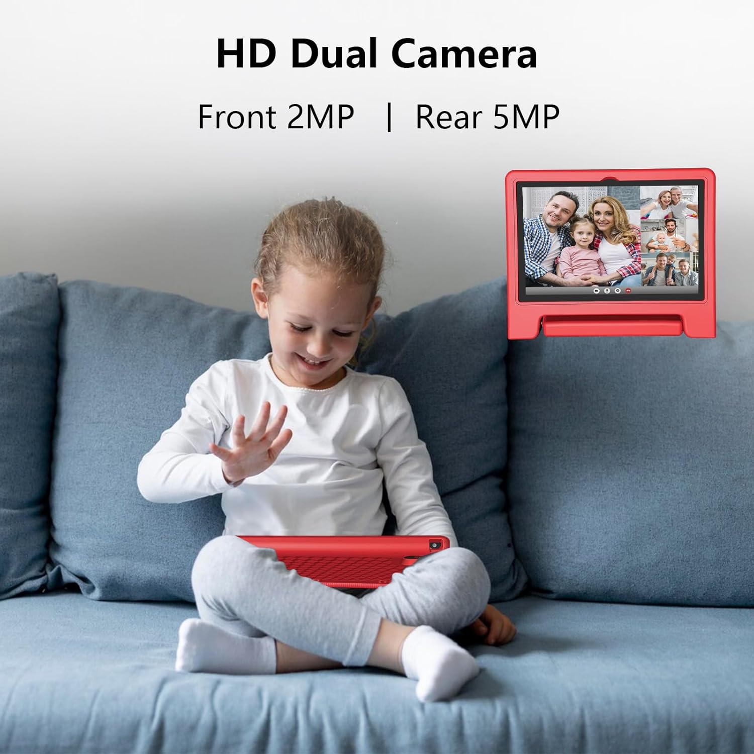 - 10.1 Inch HD Large Display: The 10.1-inch kids tablet features a 1280 x 800 HD touchscreen, offering bright, clear visuals for educational content and games. With an eye-care mode, this kids tablet provides a smooth viewing experience while protecting your child's eyes. 2MP front camera & 5MP back camera for taking photos and video calls.