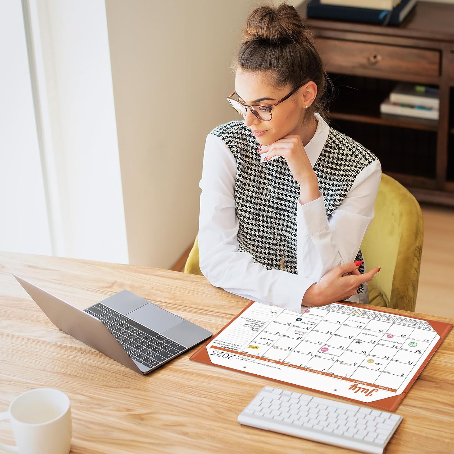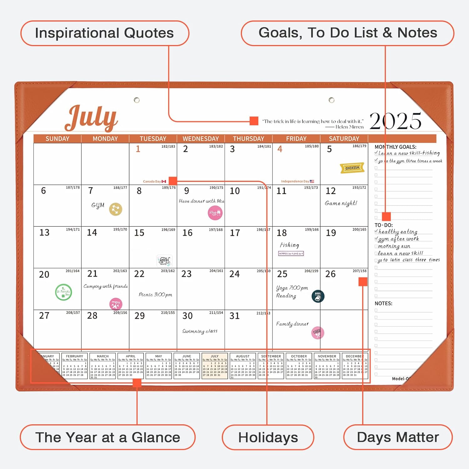Ospelelf Desk Calendar 2025-2026 Wall Monthly Planner 12"x17" Leather Pad with Protective Cover 18 Months July 2025 to December 2026 Orange