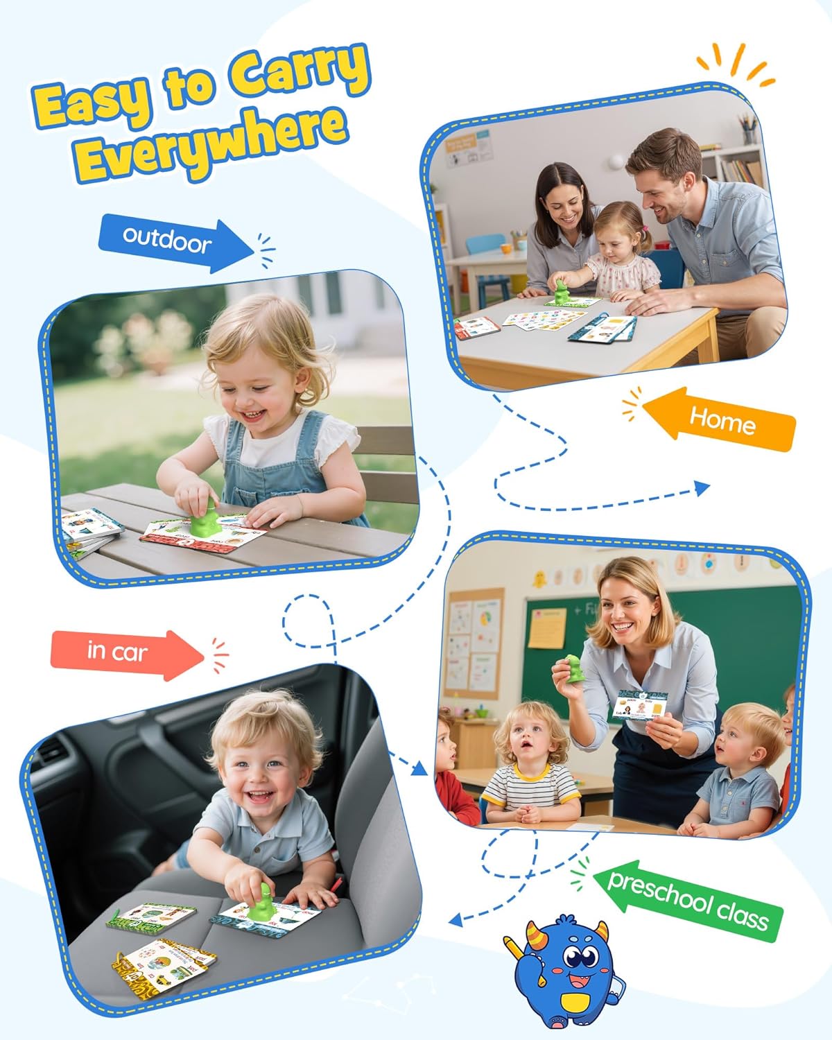 - [Easy to carry]If you're tired of keeping children entertained on long trips, this is not just a dinosaur toy - it's a super fun learning tool that can engage preschool children for hours. Plus, It is equipped with a organize ring, making it an effortless travel companion for road trips and long drives.
