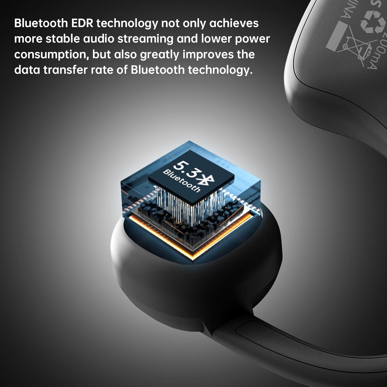 - 【Without deformation & IPX5 Waterproof】The open-ear earbuds are made of a high-strength memory titanium neckband and soft silicone,360 °random bending without any deformation.IPX5 waterproof effectively prevent the intrusion of sweat, can easily deal with daily sweat and rain.perfect for your kids' outdoor and indoor sports