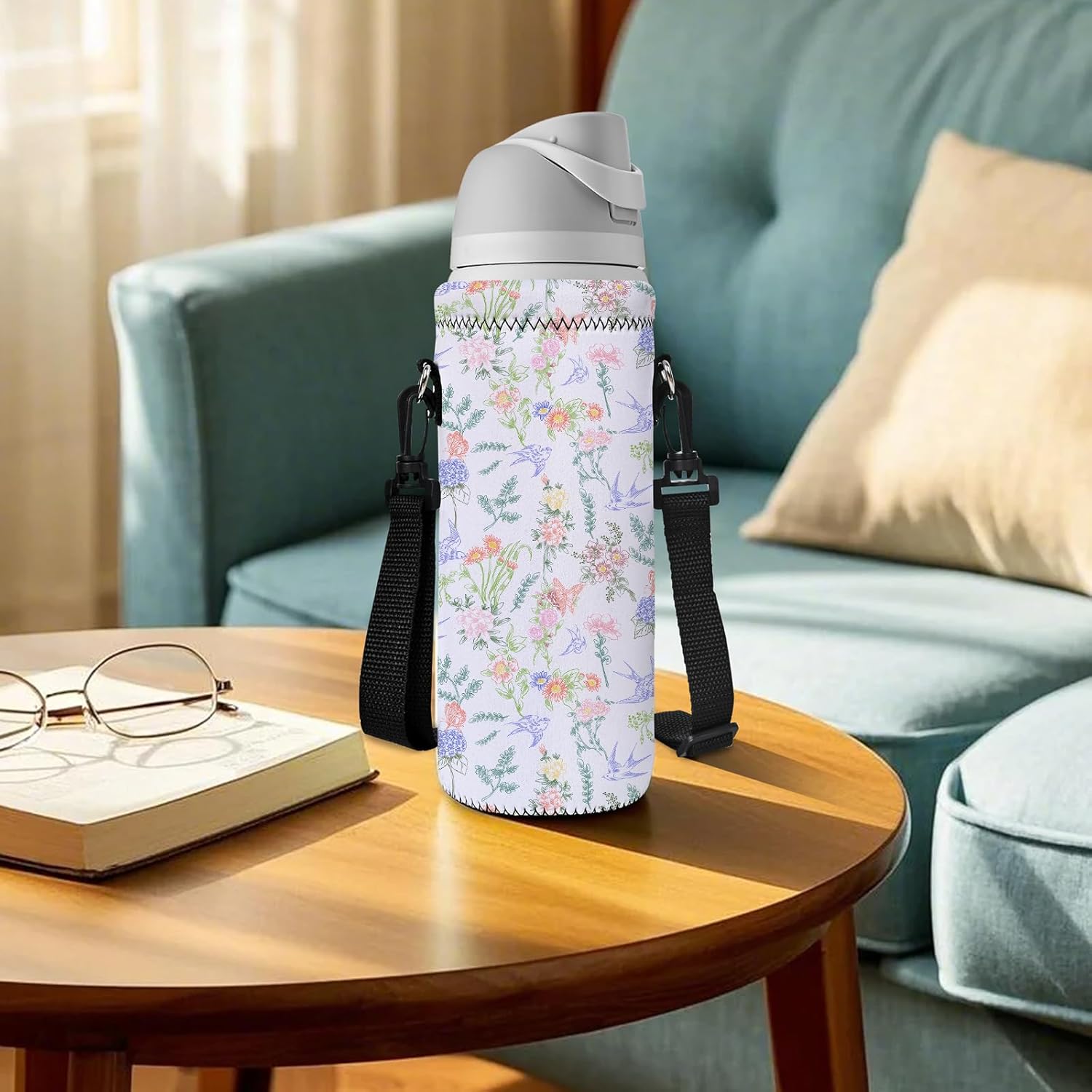 RICHEN Neoprene Water Bottle Carrier Bag with Adjustable Shoulder Strap,Insulated Water Bottle Cover for Stainless Steel/Glass/Plastic Bottles