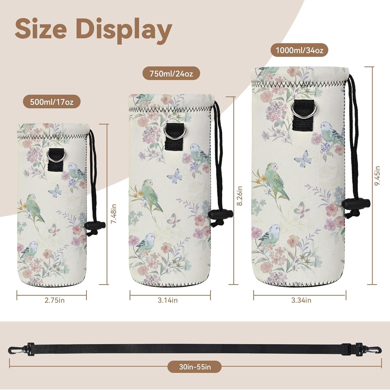 - Dimension : Length-8.66 inches,Diameter-3.14 inches,the neoprene stretches to fit most bottles.