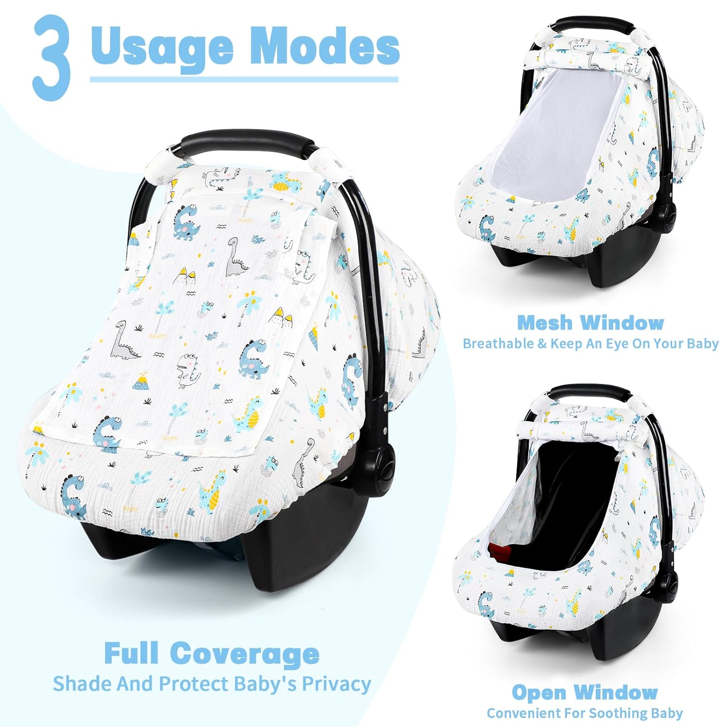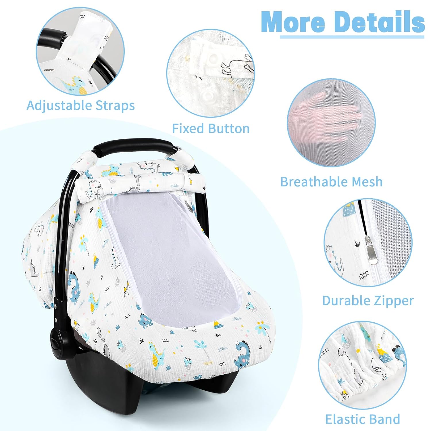 - Perfect Baby Essentials: Our baby car seat covers feature a stylish and functional design with cute and fun dinosaur prints that are essential for your baby registry. This muslin car seat cover is packaged in a beautiful box, making it an ideal gift for new moms and babies
