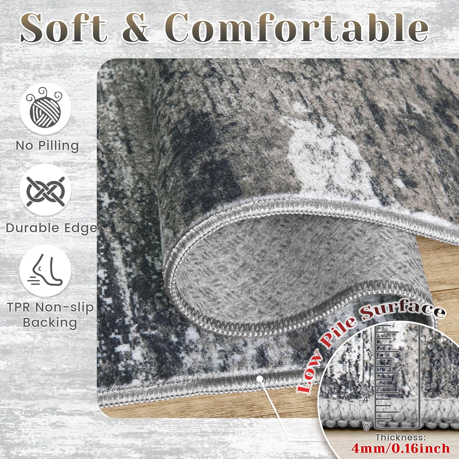 - 【Non-Slip TPR Backing】Durable TPR rubber backing provides reliable stability on hardwood, tile, or laminate flooring to increase safety, it keeps the living room rug stay firmly in place as you are walking on it, so you don't have to worry about it moving around.