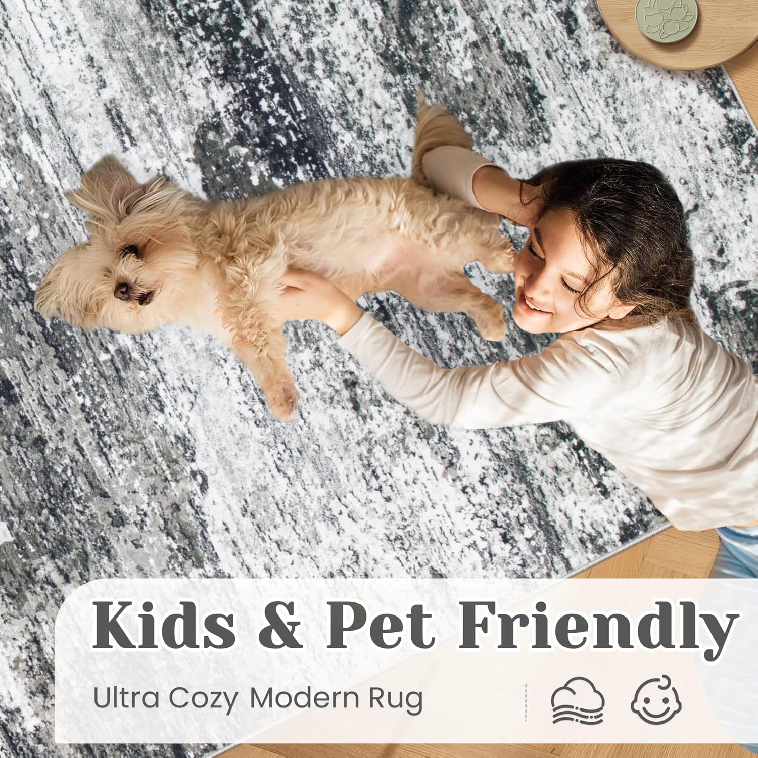 - 【Kids & Pet Friendly】Made from high-quality, fade-resistant fabric, this 8x10 rug is safe for children to touch and play on. Its 0.16-inch low-pile design resists shedding, while pet hair and dander don’t cling easily. Stains and dirt wipe away effortlessly, making it perfect for relaxing with your little ones and pets.
