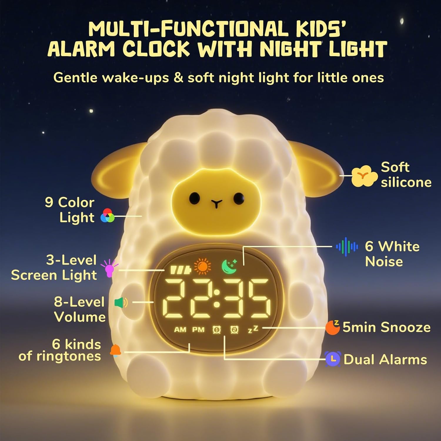TCJJ Kids Sleep Training Alarm Clock with Night Light - OK to Wake Clock & Sound Machine, Rechargeable Silicone Animal Lamp for Boys Girls Bedroom