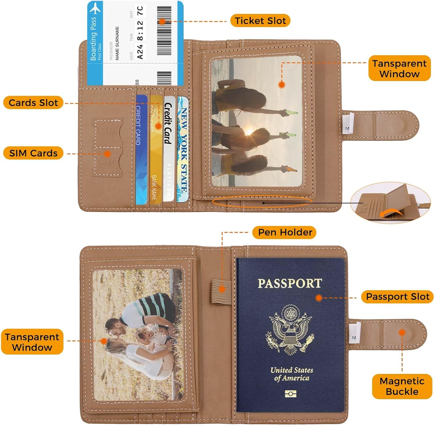 - 【Snap Button Closure and Security Protective】The passport holder with the hidden magnetic snap button closure design, which is safe and reliable to protect your travel items from being lost,to provide dual protection.Besides,RFID blocking shield material inside, Our passport case has a material engineered specifically to block 13.56 MHz or higher RFID signals and protect our important private information stored on your passport and credit cards from unauthorized scans.
