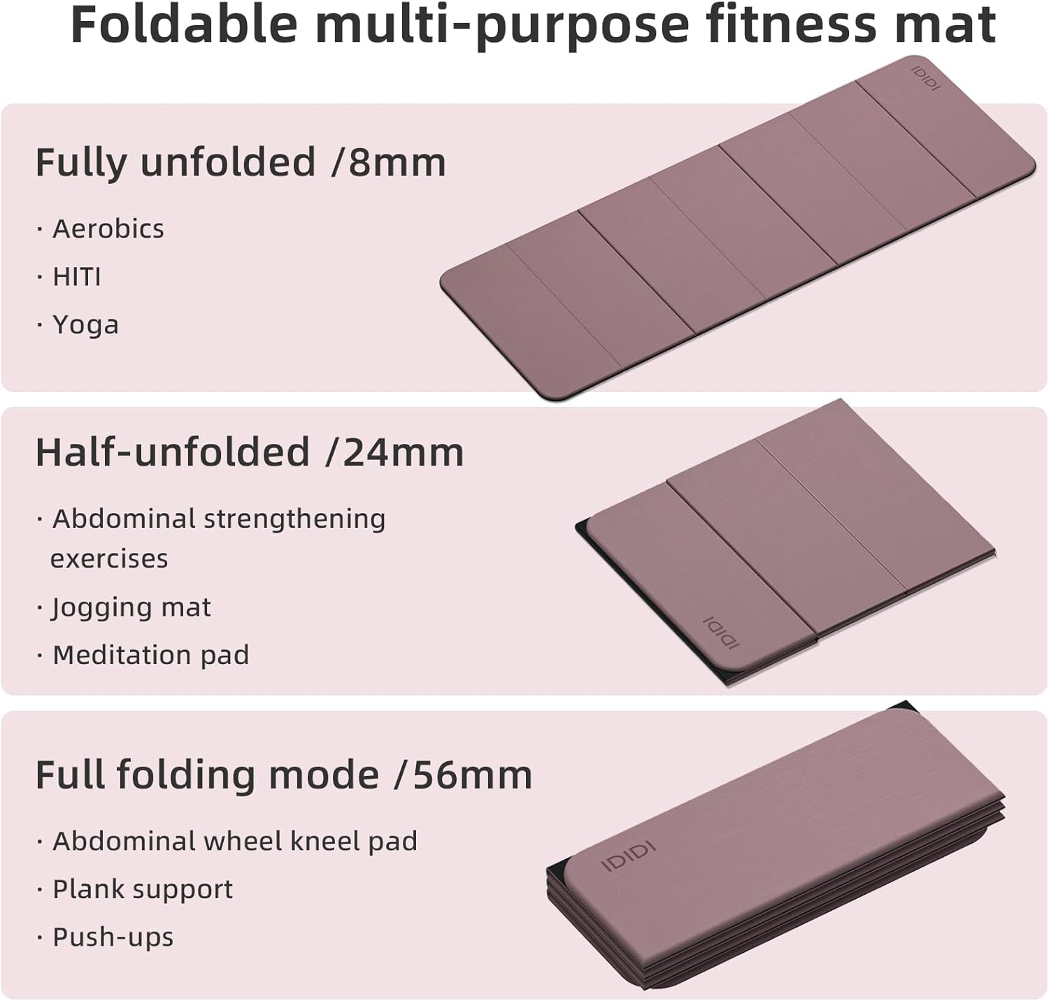 - Multi-Functional Fitness Mat for Enhanced Workout Support: The Mat doubles as a step stool for incline/decline exercises, adding versatility to your workouts. Whether you plank, jump, dance, lunge, or balance, this thick yoga mat can be folded for extra support or to introduce a challenging variety to your fitness routine