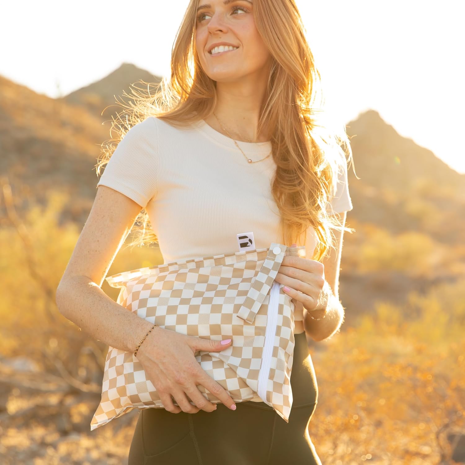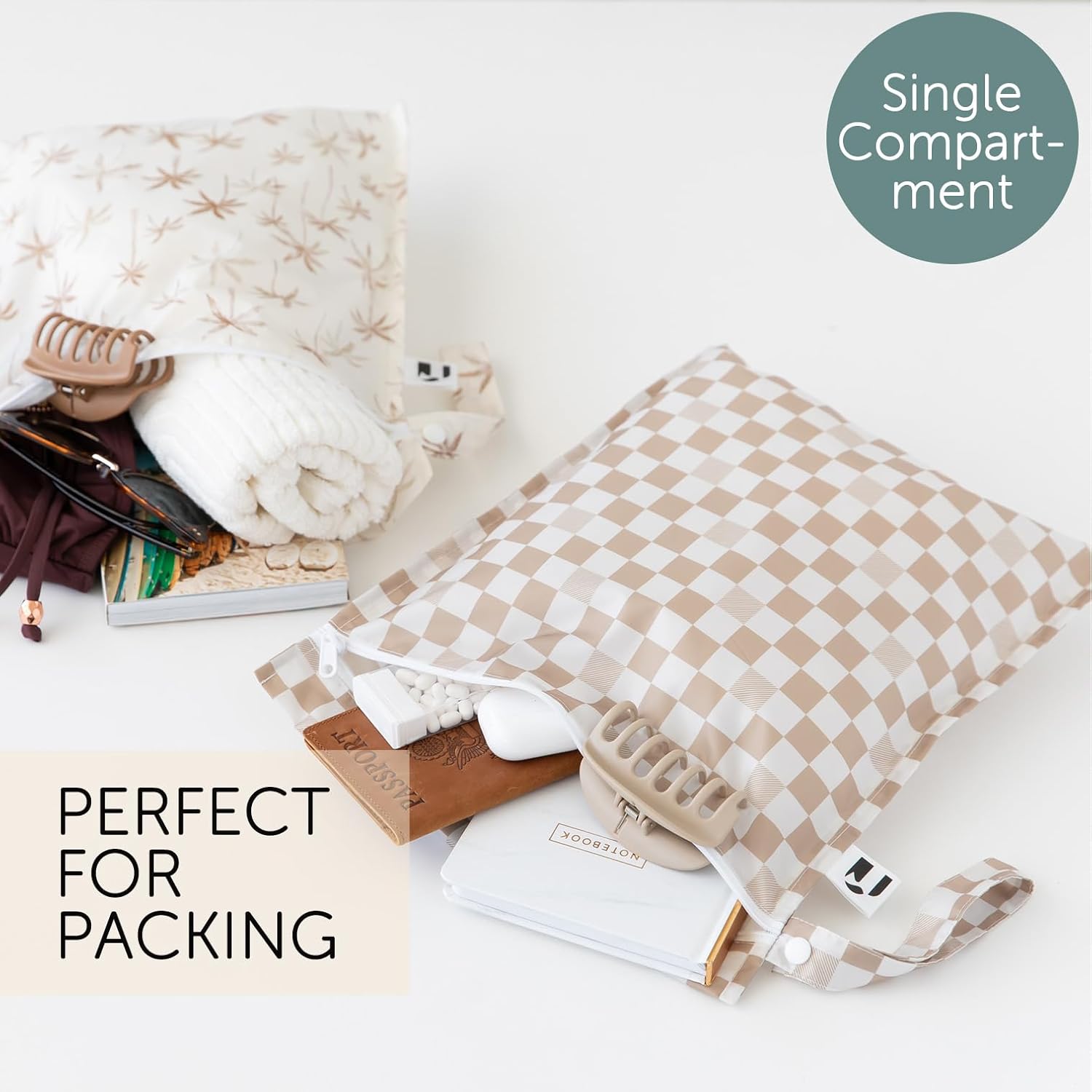 - VERSATILE USE - Not just for wet items! Use as organizers for storage, packing cubes, or diaper bag essentials. Built-in snap handle makes it easy to attach to strollers, suitcases, or hooks—great for travel, camping, pool days, and more.