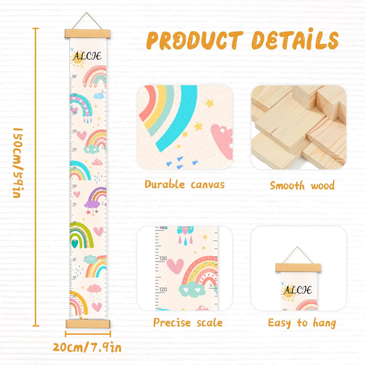 - Personalized Name Growth Chart: Customize a name height chart for kids. Our kids' growth chart is an essential addition to any nursery or child's bedroom for monitoring their development, tracking your child’s growth, and is good for nursery wall decor.