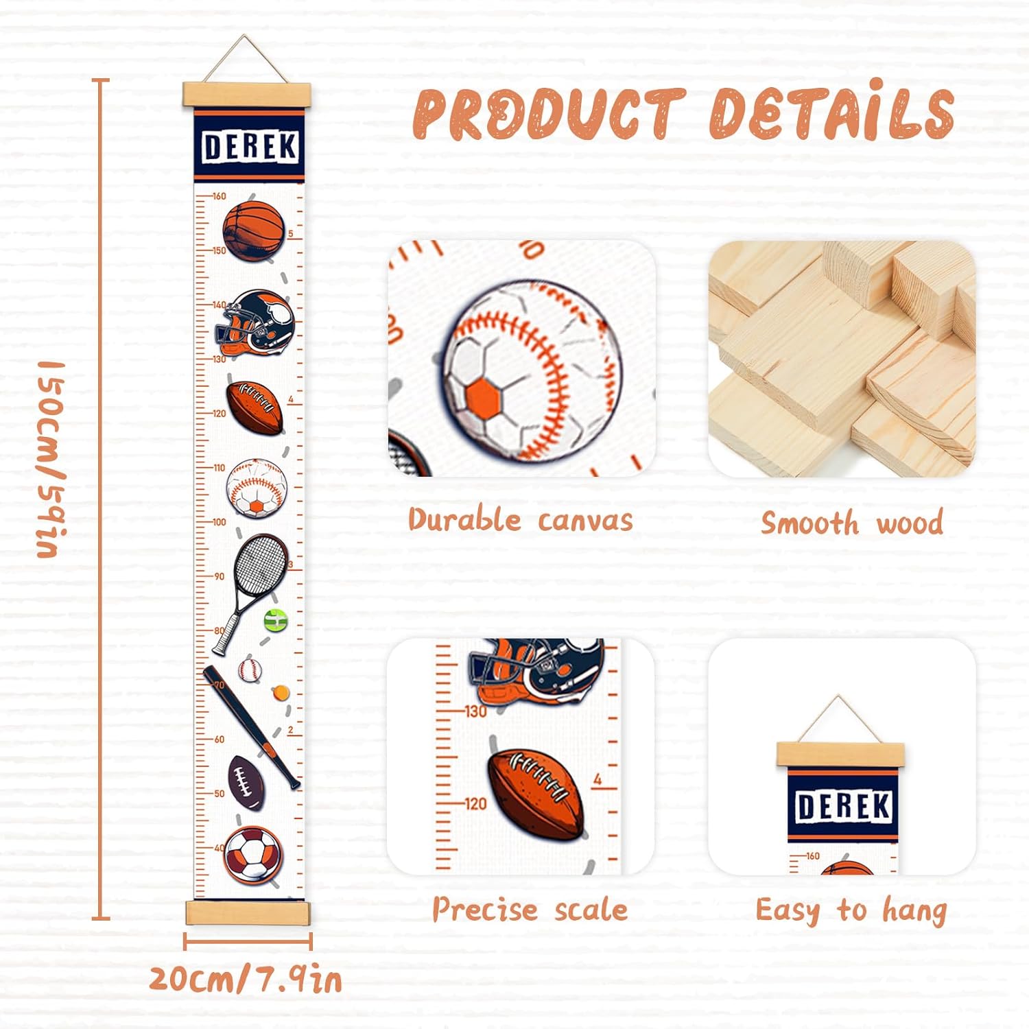 - Canvas Height Chart: Crafted from top-grade, thick, resilient, and waterproof canvas encased in a wooden frame, our kids growth chart for wall guarantees unmatched quality. They are safe, lightweight, foldable, and waterproof.